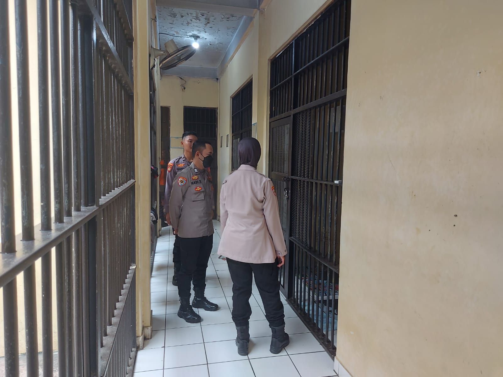 Piket Propam melakukan pengawasan pengecekan tahanan yang dilakukan bersama piket Tahti, piket satfung dan Propam mengecek Ruang Tahanan di Rutan Polres Cilegon