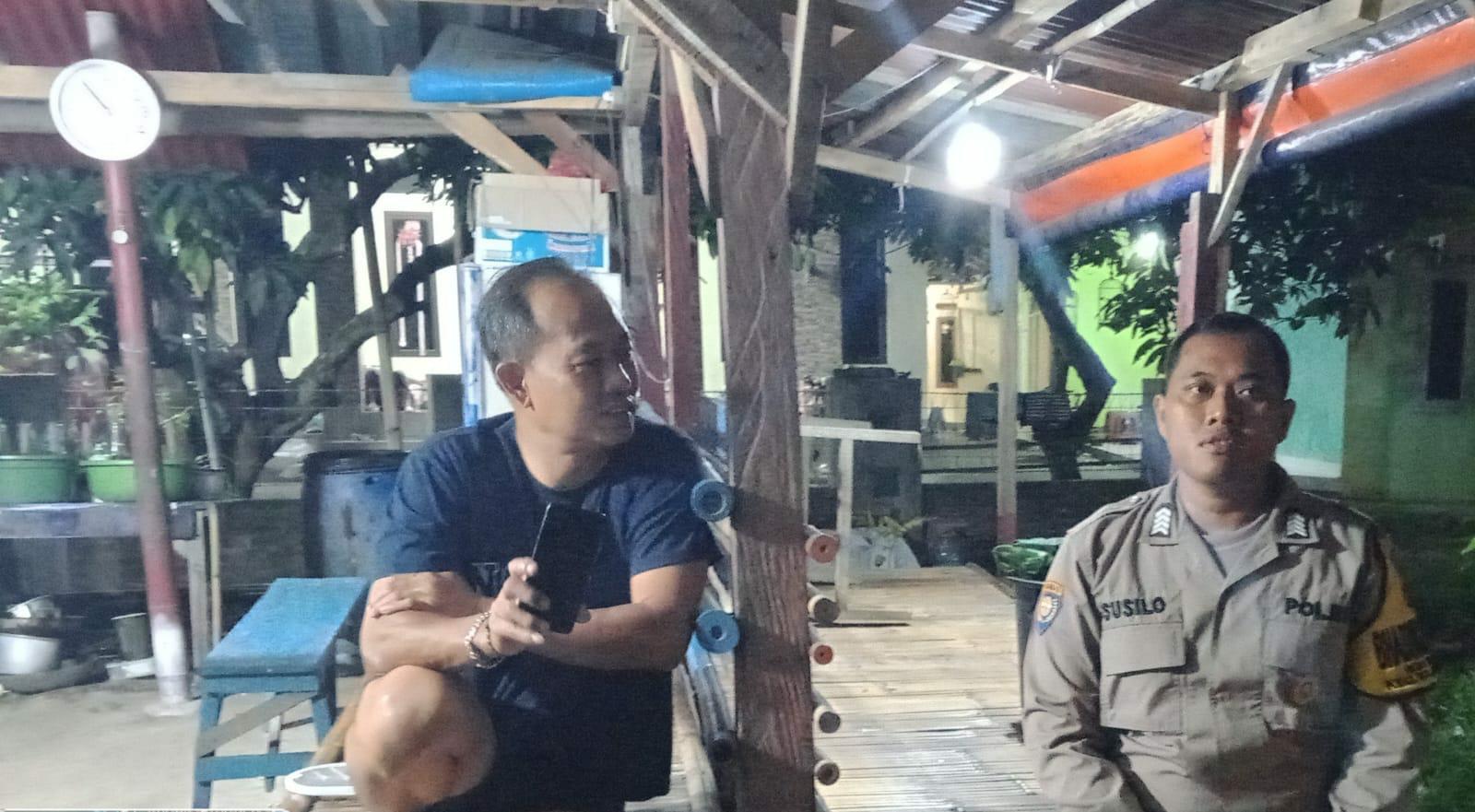 Bhabinkamtibmas menyambangi  warga  yang sedang duduk-duduk santai dan ngobrol , pada kesempatan yang baik tersebut Bhabinkamtibmas menyampaikan pesan-pesan kamtibmas dan Mengajak masyarakat untuk meningkatkan kewaspadaan serta untuk bersama-sama ikut serta menjaga keamanan lingkungan guna mencegah terjadinya gangguan kamtibmas.