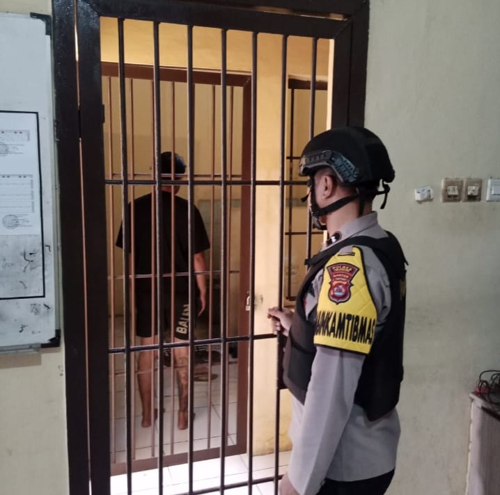 Personil Piket jaga Cek dan kontrol ruang tahanan Polsek Purwakarta