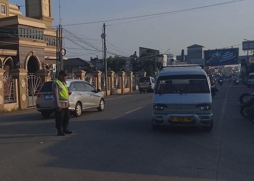 Personil Polsek Anyar Lakukan Pengaturan Lalu Lintas Lancarkan Jalur Kendaraan
