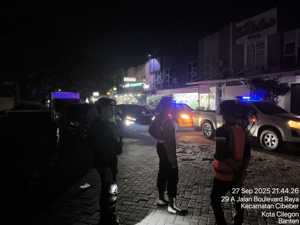Lampu Biru Polisi Terangi Malam Cilegon demi Keamanan
