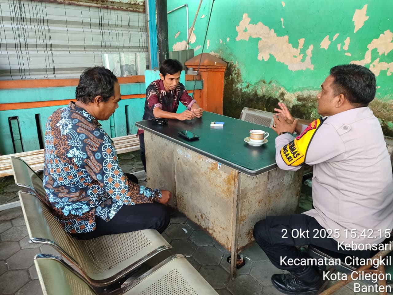 Cilegon -  Bhabinkamtibmas Polsek Ciwandan Polres Cilegon Polda Banten Menyapa warga serta Ajak warga Binaannya untuk berperan aktif jaga keamanan lingkungan serta jalin komunikasi agar tercipta situasi aman di daerah hukum Polsek Ciwandan Polres Cilegon Polda Banten,Kamis (02/10/2025).