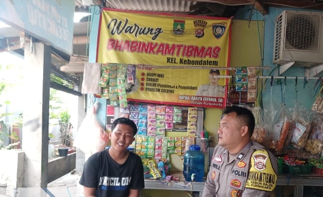 Babinkamtibmas Kelurahan Kebon Dalem, Kecamatan Purwakarta, melaksanakan kegiatan rutin dengan menerima keluh kesah warga di salah satu warung kopi di wilayah binaannya
