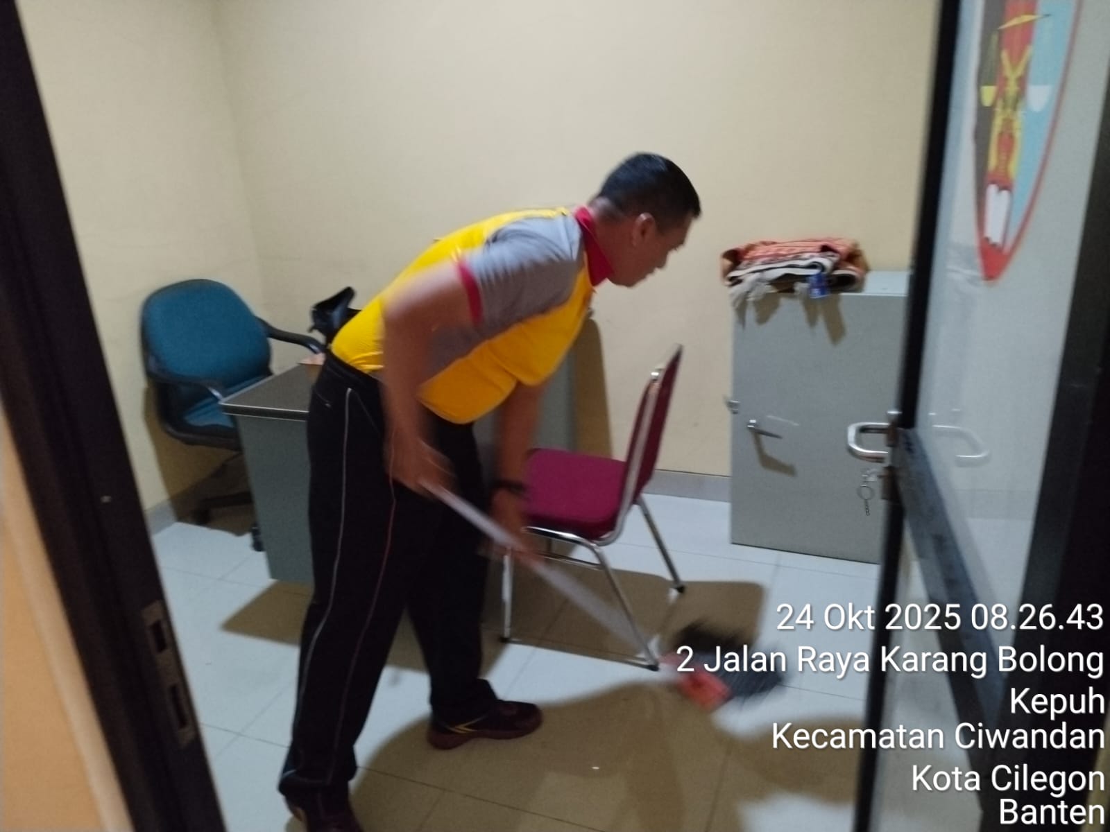 Cilegon – Demi Menjaga Kebersihan Personil Polsek Ciwandan Polres Cilegon Polda Banten Bersama-sama Bersih-bersih lingkungan Markas Komando Dan Ruang Kerja Masing-masing guna menciptakan situasi lingkungan yang sehat dan bersih, Sabtu (25/10/2025).