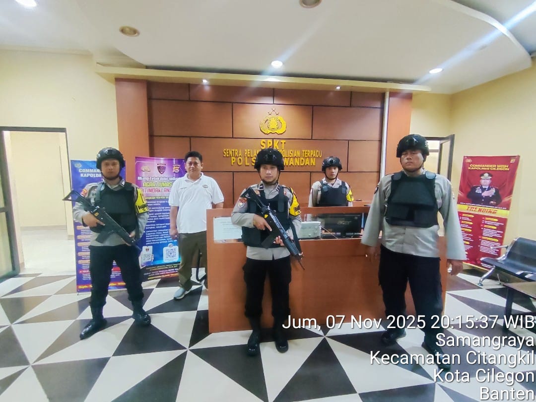Cilegon - Dalam Kesiap Siagaan dan Memperketat Penjagaan Mako (Markas Komando), Personil Polsek Ciwandan Polres Cilegon Polda Banten melaksanakan Sistem Pengamanan Markas Komando (Sispam Mako), Sabtu (08/11/2025).