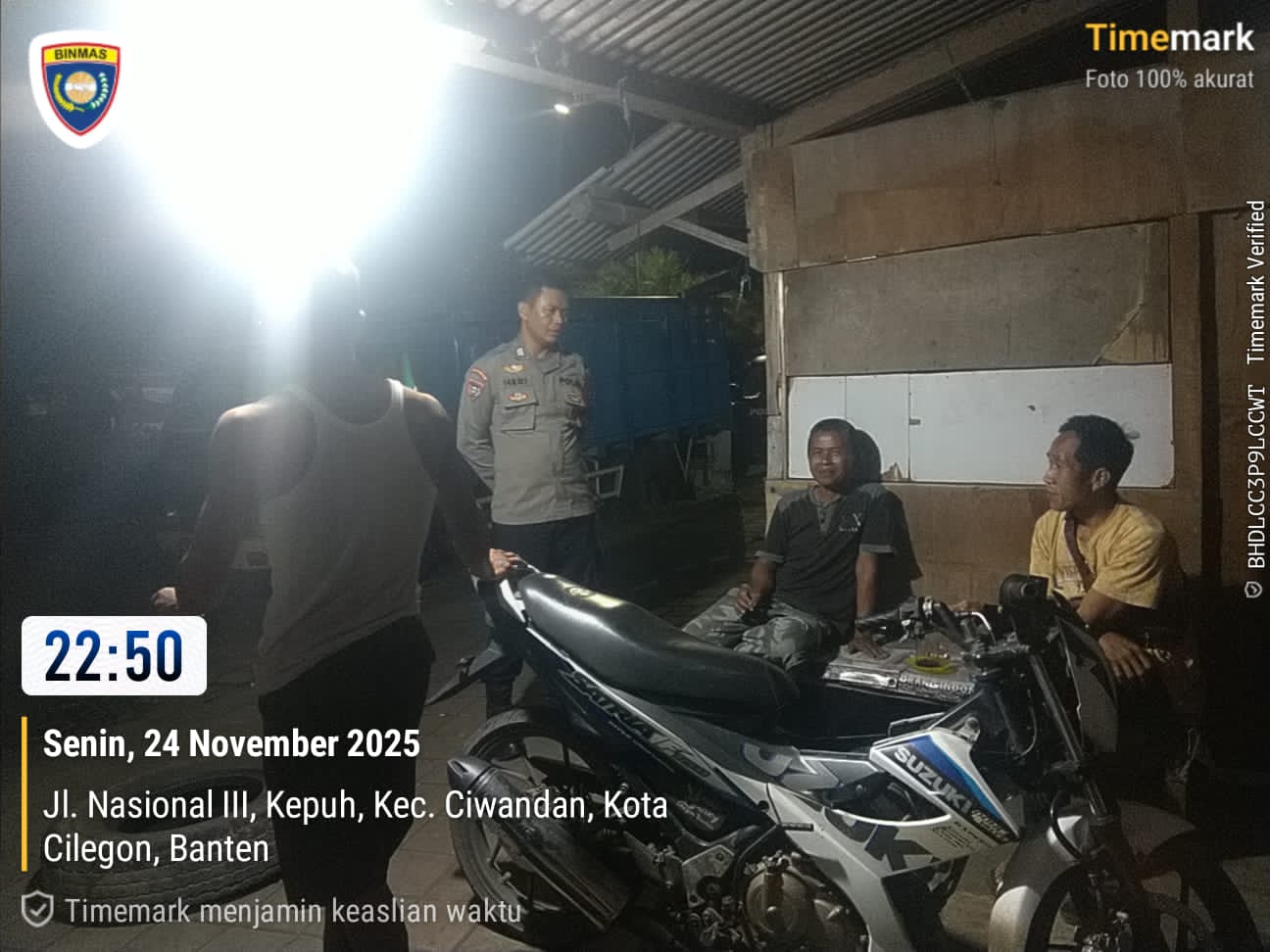 Cilegon - Polsek Ciwandan Polres Cilegon Polda Banten kembali menunjukkan komitmennya dalam menciptakan keamanan dan ketertiban masyarakat (kamtibmas) yang kondusif melalui Kegiatan Patroli Malam, Kegiatan ini dilakukan secara rutin dengan berkeliling di daerah hukum Polsek Ciwandan,Selasa (25/11/2025).
