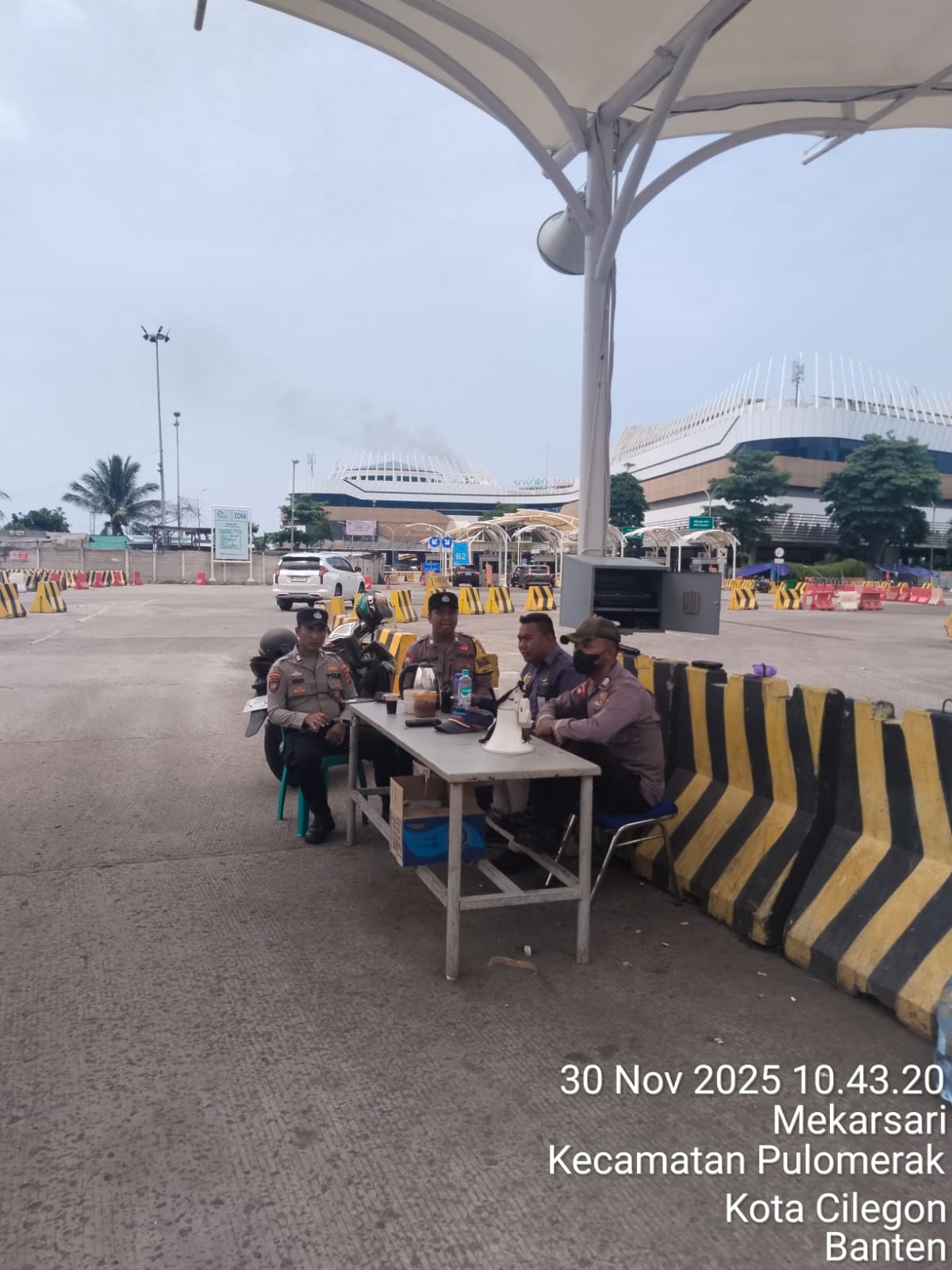 Cilegon - Personel Polsek Kskp Merak Polres Cilegon Polda Banten melaksanakan sambang dan patroli kawasan pelabuhan merak dalam rangka menjaga Harkamtibmas di Kawasan Pelabuhan Merak, Senin (01/12/2025).