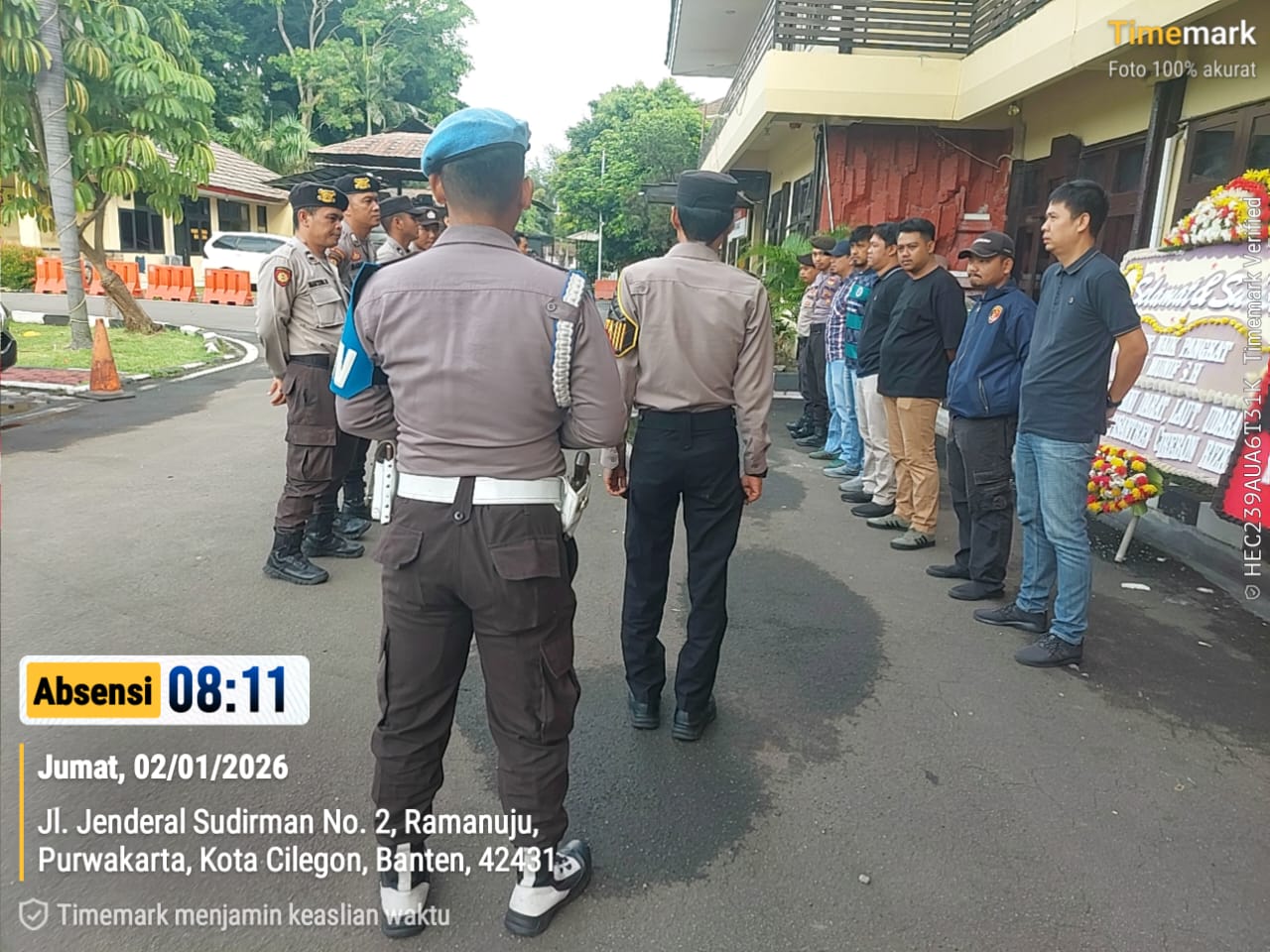 Cilegon, personel Satreskrim Polres Cilegon Polda Banten melaksanakan piket di penjagaan pintu masuk Polres Cilegon Polda Banten untuk memastikan mako Polres Cilegon dalam keadaan aman dan nyaman dalam melayani Masyarakat tanpa adanya gangguan kejahatan. Jumat (02/01/2026).