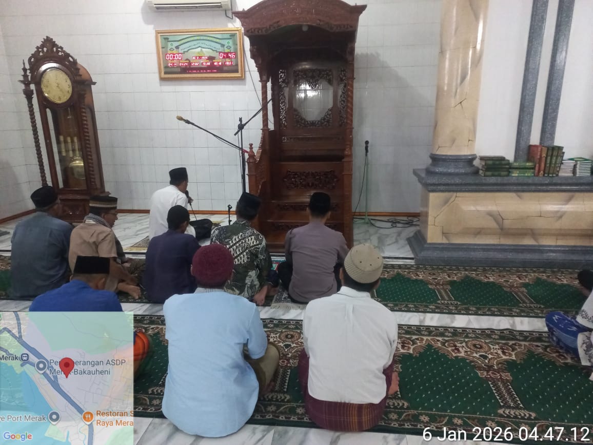 Cilegon – Personil Kskp Merak Polres Cilegon Polda Banten menggelar kegiatan Pembinaan Rohani dengan shalat subuh keliling di Masjid Yang ada Di Daerah hukum Polsek Kp Merak Polres Cilegon Polda Banten, Selasa (06/01/2026).
