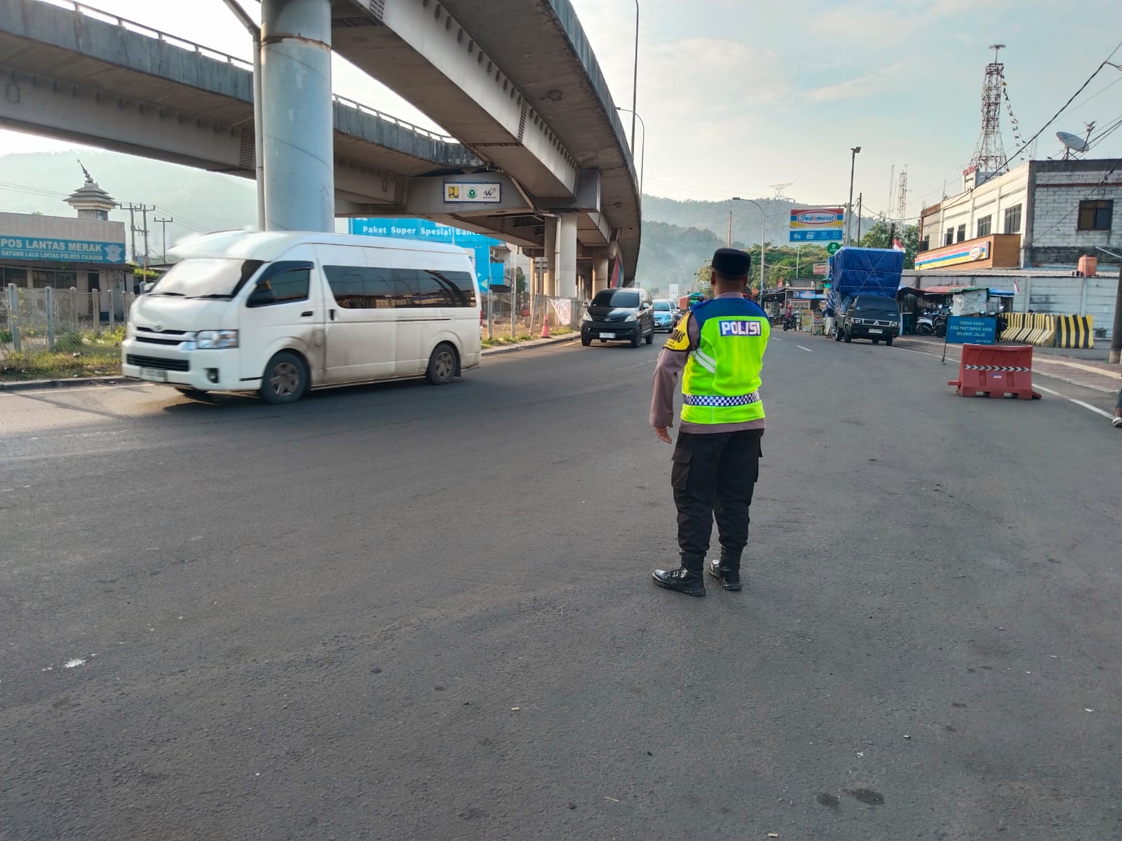 Personel Polsek Kskp Merak melaksanakan kegiatan pengaturan arus lalu lintas di sekitar kawasan Pelabuhan Merak, Kota Cilegon. Kegiatan ini dilakukan guna mengantisipasi peningkatan volume kendaraan serta menjaga kelancaran dan keamanan arus lalu lintas menuju dan keluar area pelabuhan.