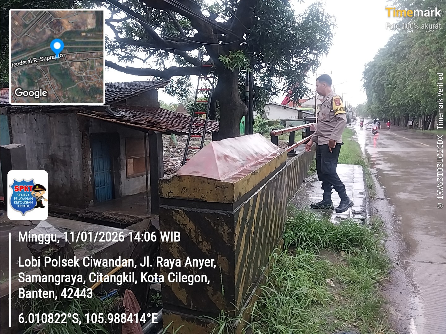 Cilegon - Dalam rangka antisipasi bencana alam personil Polsek ciwandan mengecek debit air di beberapa titik aliran sungai salah satunya yaitu kalimuk RT 005 RW 006 Kelurahan samang Raya Kecamatan citangkil Kota Cilegon, Minggu (11/01/2026).