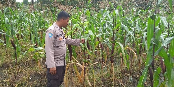 bhabinkamtibmas kota bumi cek tanaman jagung,dukung program ketahanan pangan kota cilegon