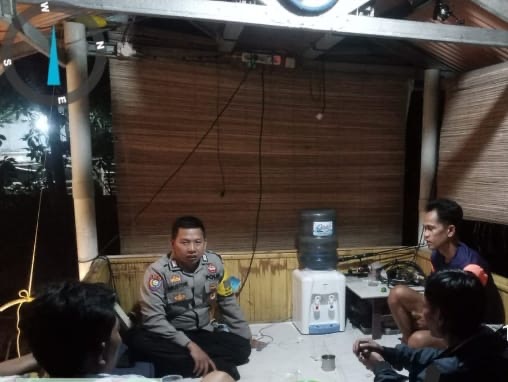Personil Bhabinkamtibmas Menyapa warga di Pos Ronda ,sampaikan himbauan kamtibmas