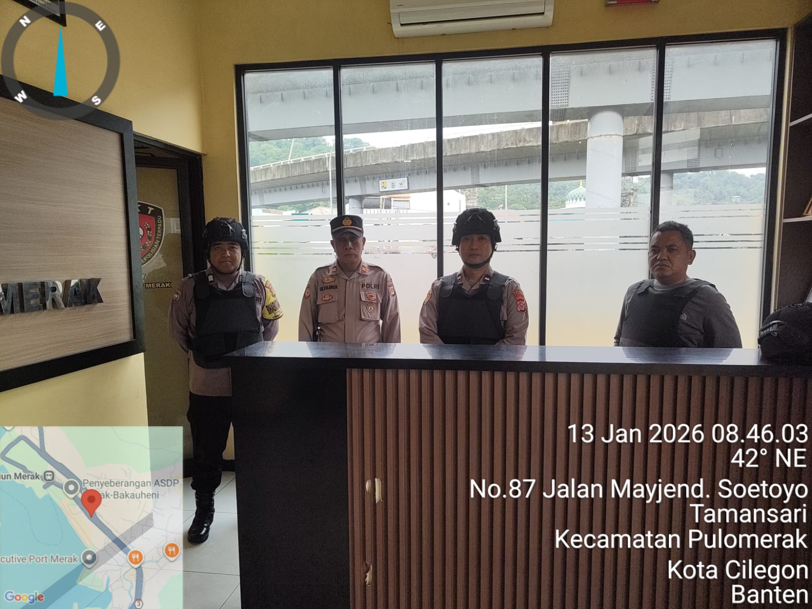 Cilegon - Personel piket jaga Polsek Kskp Merak Polres Cilgon Polda Banten melaksanakan siaga 1 Polsek pelaksanaan Sispam Mako oleh piket siaga dipimpin oleh Kspk Polsek Kskpy Merak Polres Cilegon Polda Banten, Selasa (13/01/2026).