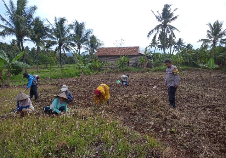Personil Bhabinkamtibmas Polsek Purwakarta Pendampingan Tanam Jagung di Kelurahan Tegalbunder