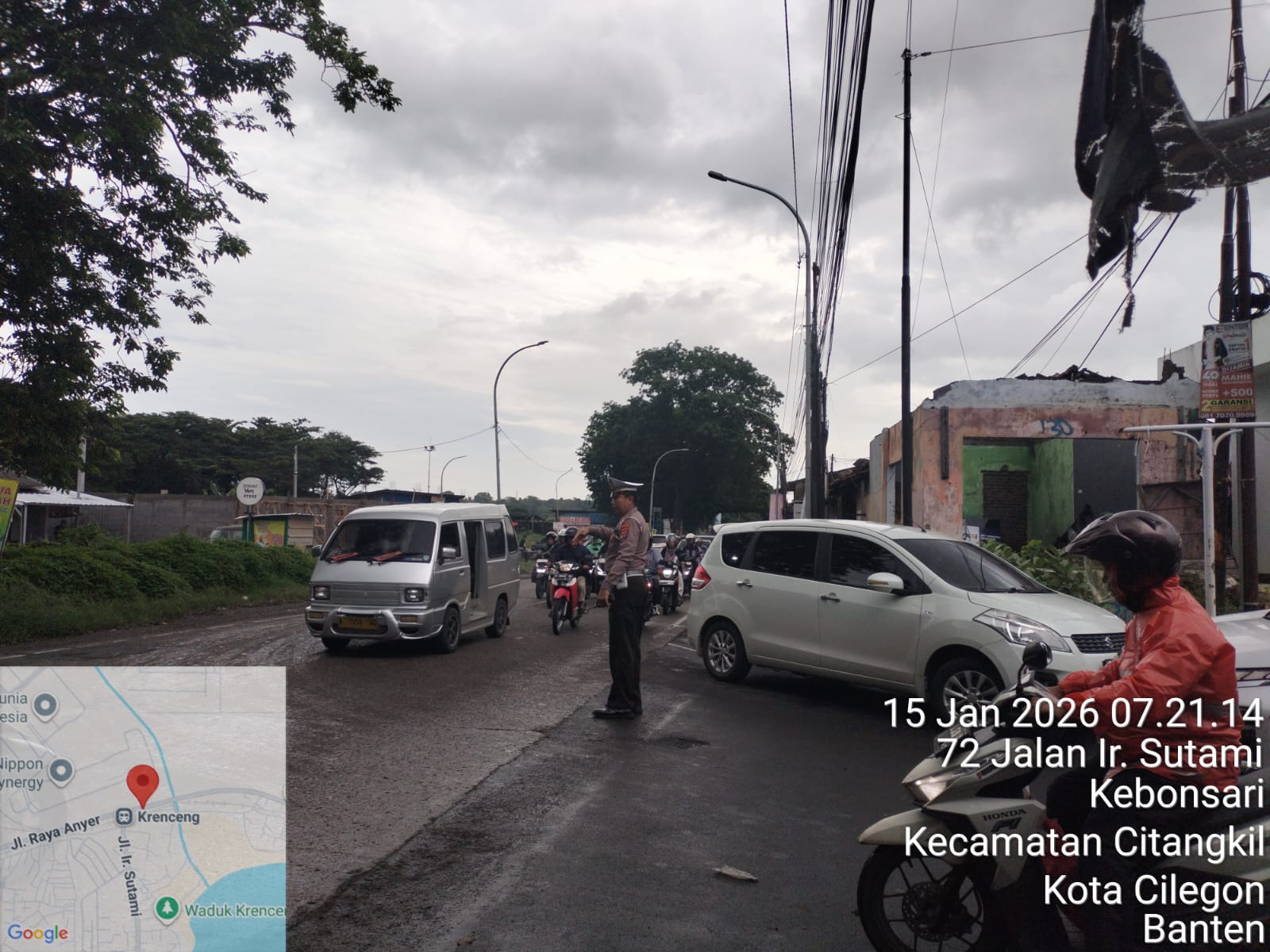 Cilegon – Berikan Pelayanan Kepada Masyarakat Personil Polsek Ciwandan Polres Cilegon Polda Banten melaksanakan pengaturan di titik kepadatan Arus Lalu-lintas Yang Ada Di daerah Hukum Polsek Ciwandan, Kamis (15/01/2026).