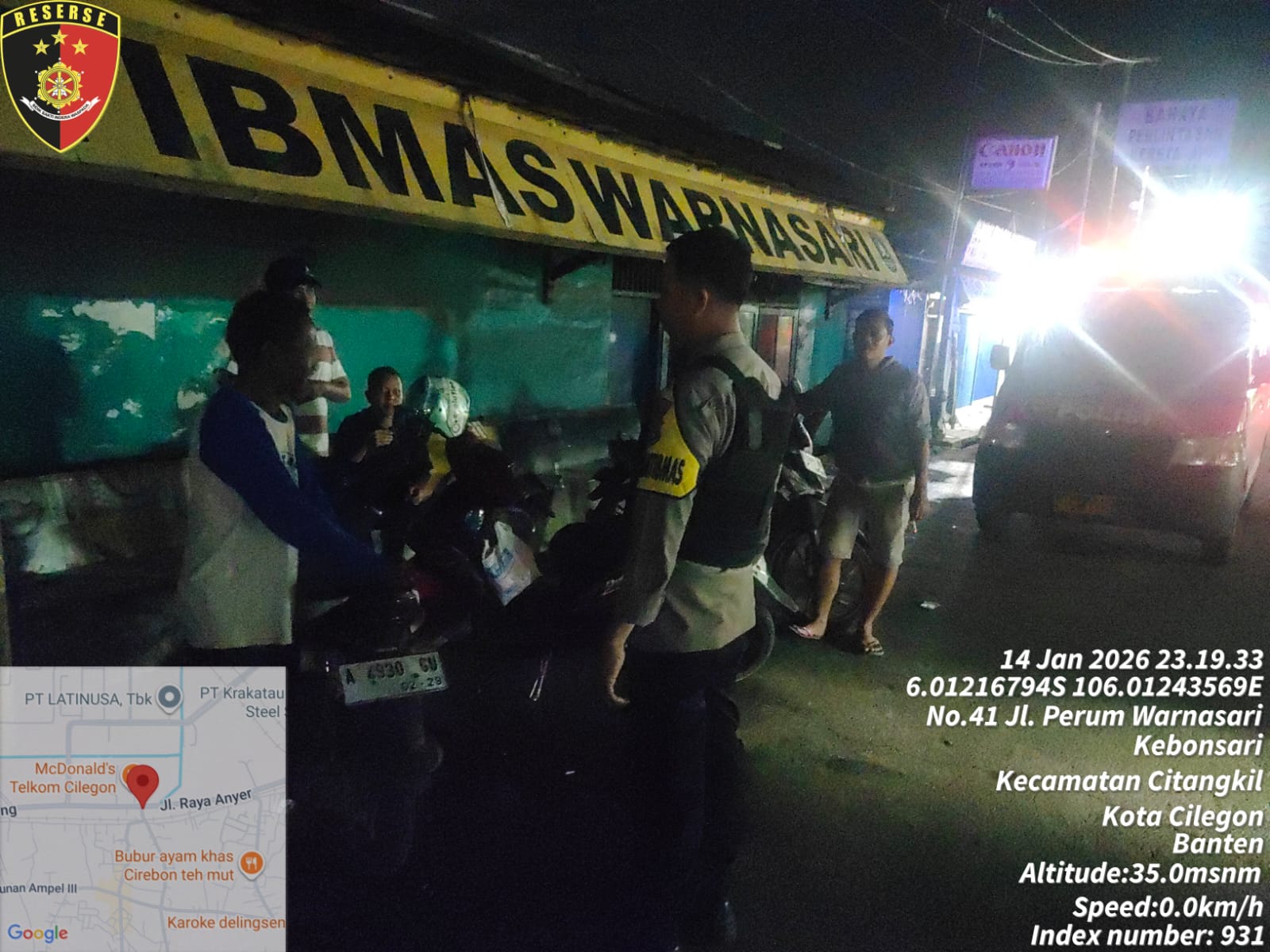 Cilegon - Guna mencegah gangguan kamtibmas, Personil Polsek Ciwandan Polres Cilegon Polda Banten melaksanakan giat Patroli dialogis dipangkalan Ojek (Opang) Pertigaan Simpang Warnasari Kelurahan warnasari kecamatan Citangkil, Kamis (15/01/2026).