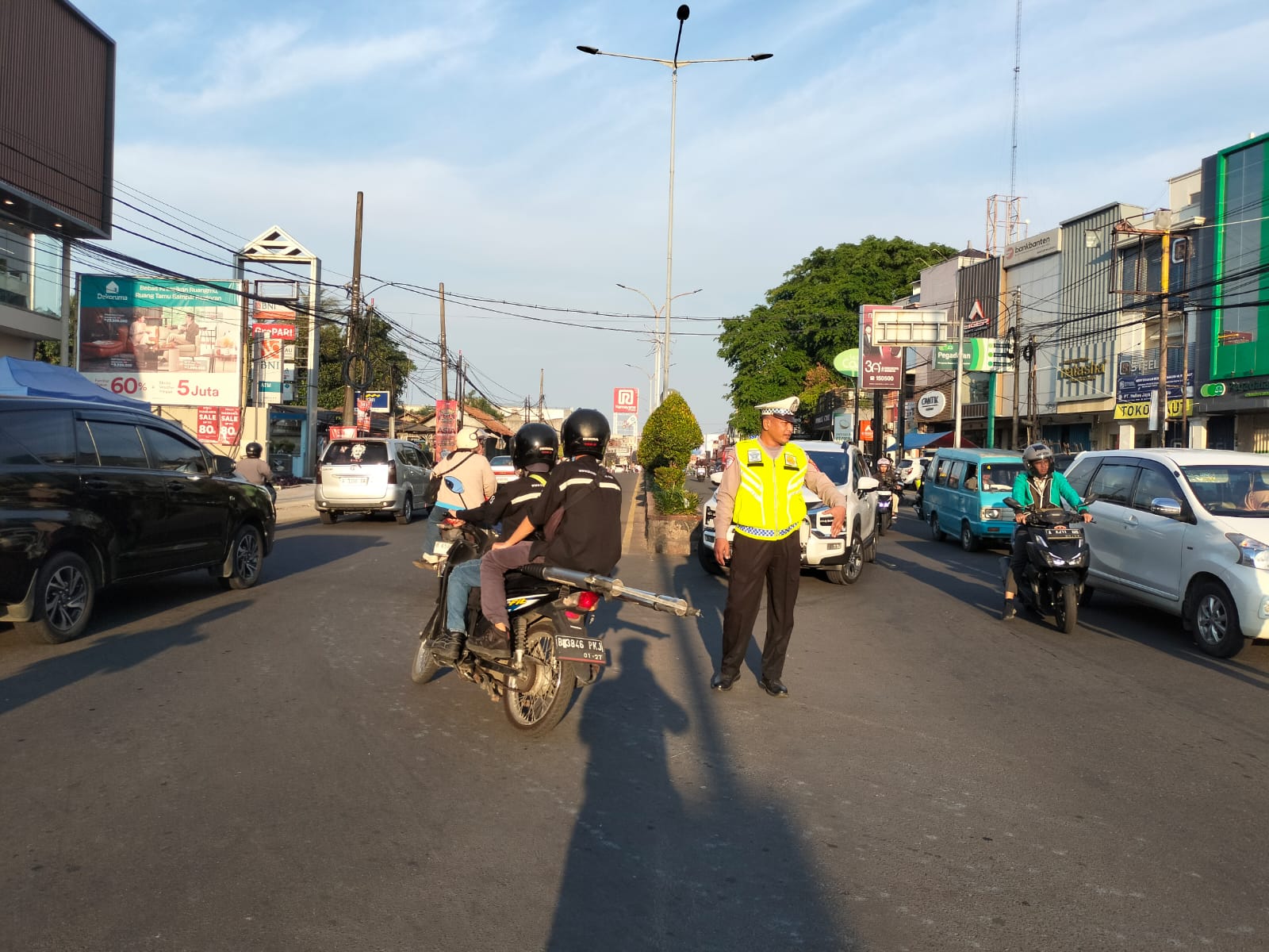 Gatur Lalin Polsek Cilegon lancarkan arus kendaraan.