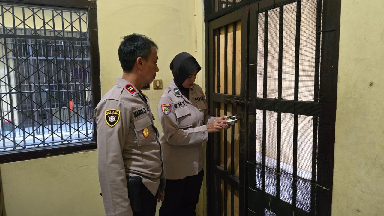 Selain pengecekan tahanan, personel juga melakukan kontrol terhadap kunci dan gembok ruangan sel.