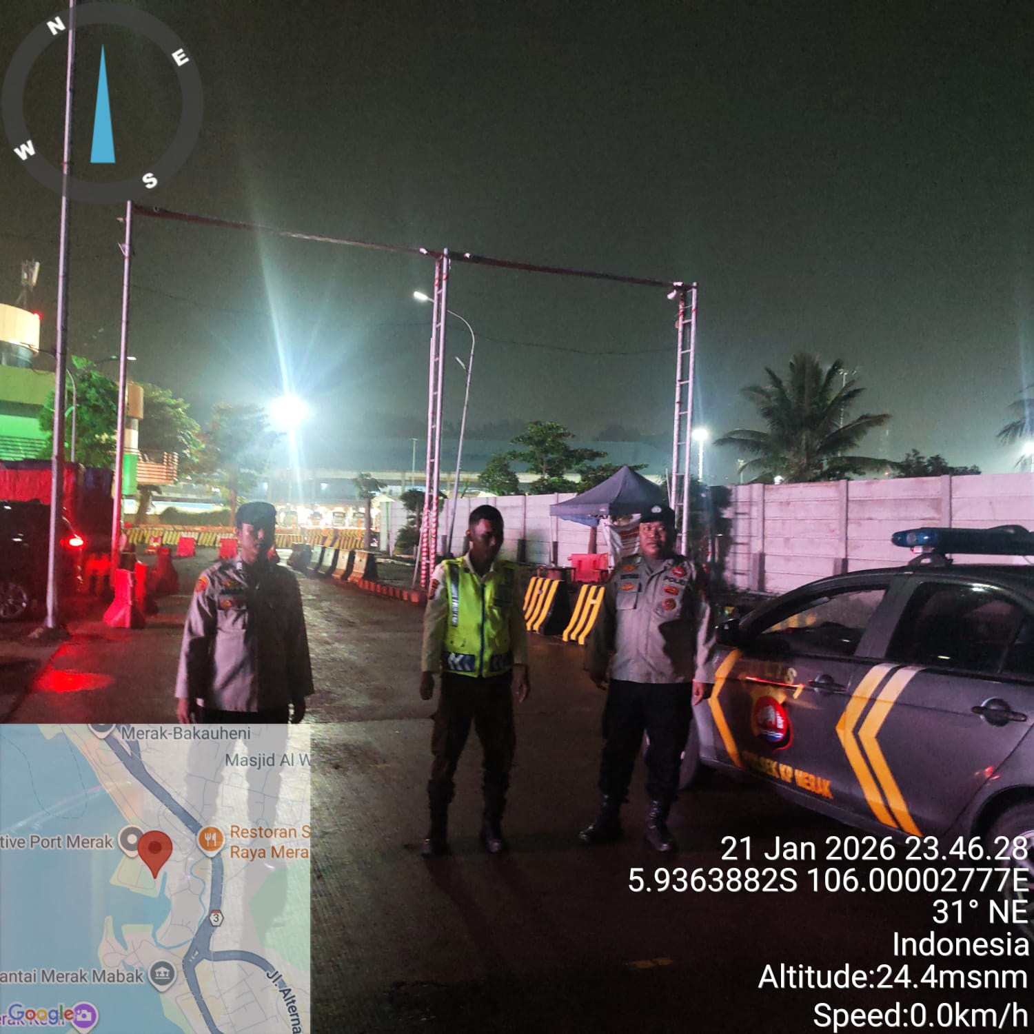 Cilegon - Personil Polsek Kskp Merak Polres Cilegon melaksanakan patroli di kawasan pelabuhan merak memberikan rasa aman dan damai, Kamis (22/01/2026)