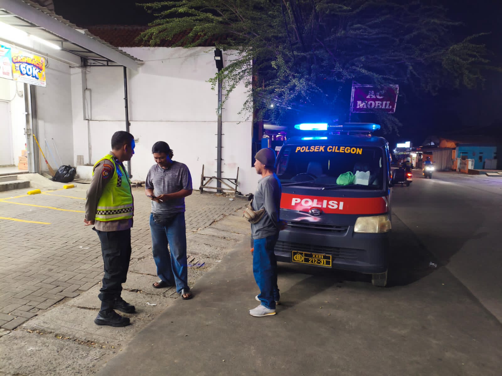 Anggota unit patroli samapta Polsek Cilegon laksanakan Blue light patrol antisipasi kejahatan malam hari jaga keamanan