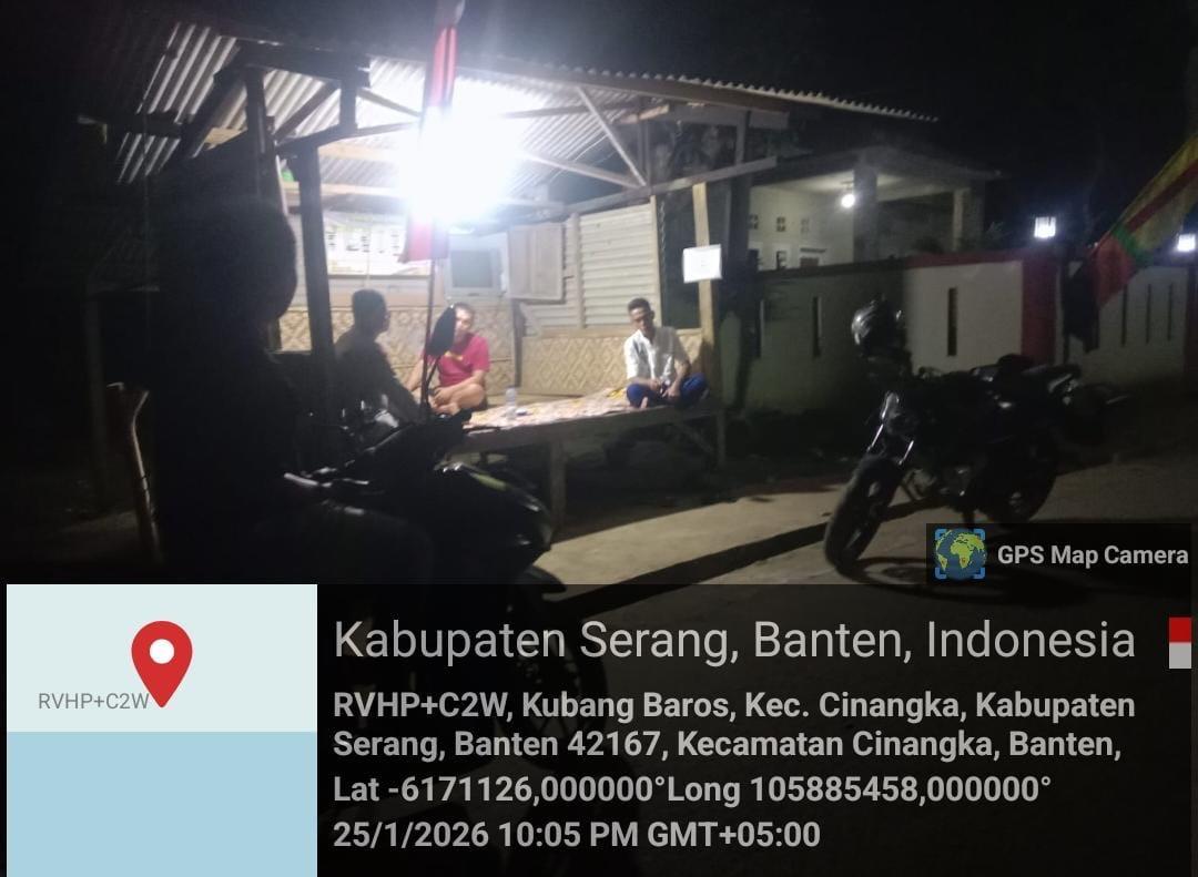 *Polres Cilegon* || Personil Bhabinkamtibmas Polsek Cinangka melaksanakan Program Komandan Wish Kapolda Banten RONDA SATKAMLING menyampaikan komunikasi dengan Petugas Siskamling agar berperan aktif dalam menciptakan Harkamtibmas yang aman dan Kondusif, Senin (26/01/2026).