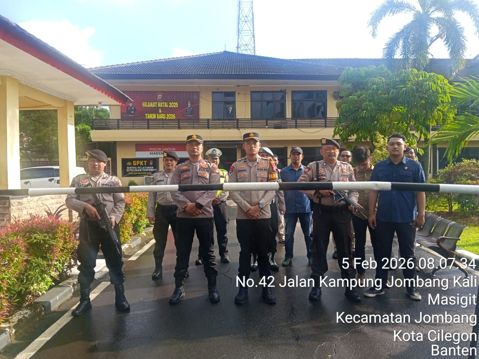 Cilegon, personel Satreskrim Polres Cilegon Polda Banten melaksanakan piket di penjagaan pintu masuk Polres Cilegon Polda Banten untuk memastikan mako Polres Cilegon dalam keadaan aman dan nyaman dalam melayani Masyarakat. Kamis (05/02/2026).