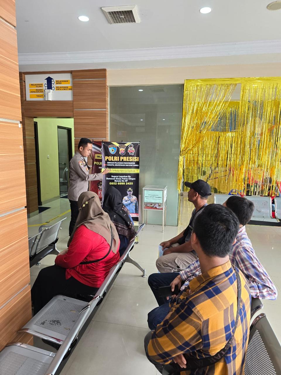 Hadi S Personel Seksi Pengawasan Polres Cilegon Melaksanakan Sosialisasi tentang pengaduan masyarakat di Pusat pelayanan Terpadu (Pusyandu) Polres Cilegon