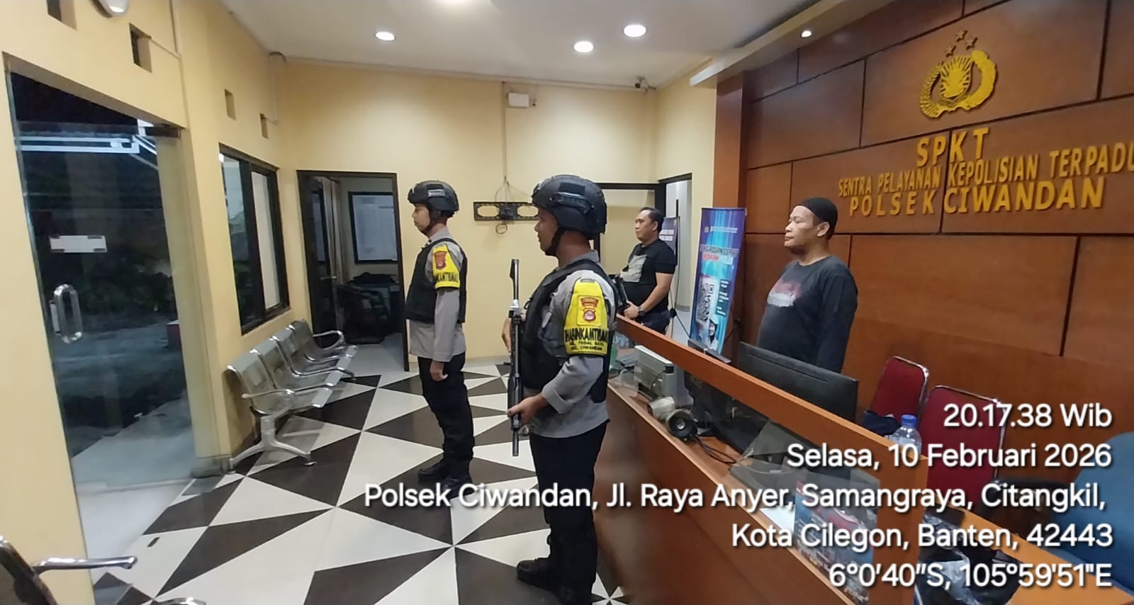 Cilegon – Polres Cilegon Polda Banten Guna mengantisipasi adanya potensi ancaman dan gangguan terhadap keamanan kantor maupun keselamatan personel piket jaga, Personel Polsek Ciwandan Polres Cilegon selalu tingkatkan kesiapsiagaan dan kewaspadaan dengan rutin menggelar kegiatan Sistem Pengamanan Mako (Sispam Mako), Selasa (10/02/2026).