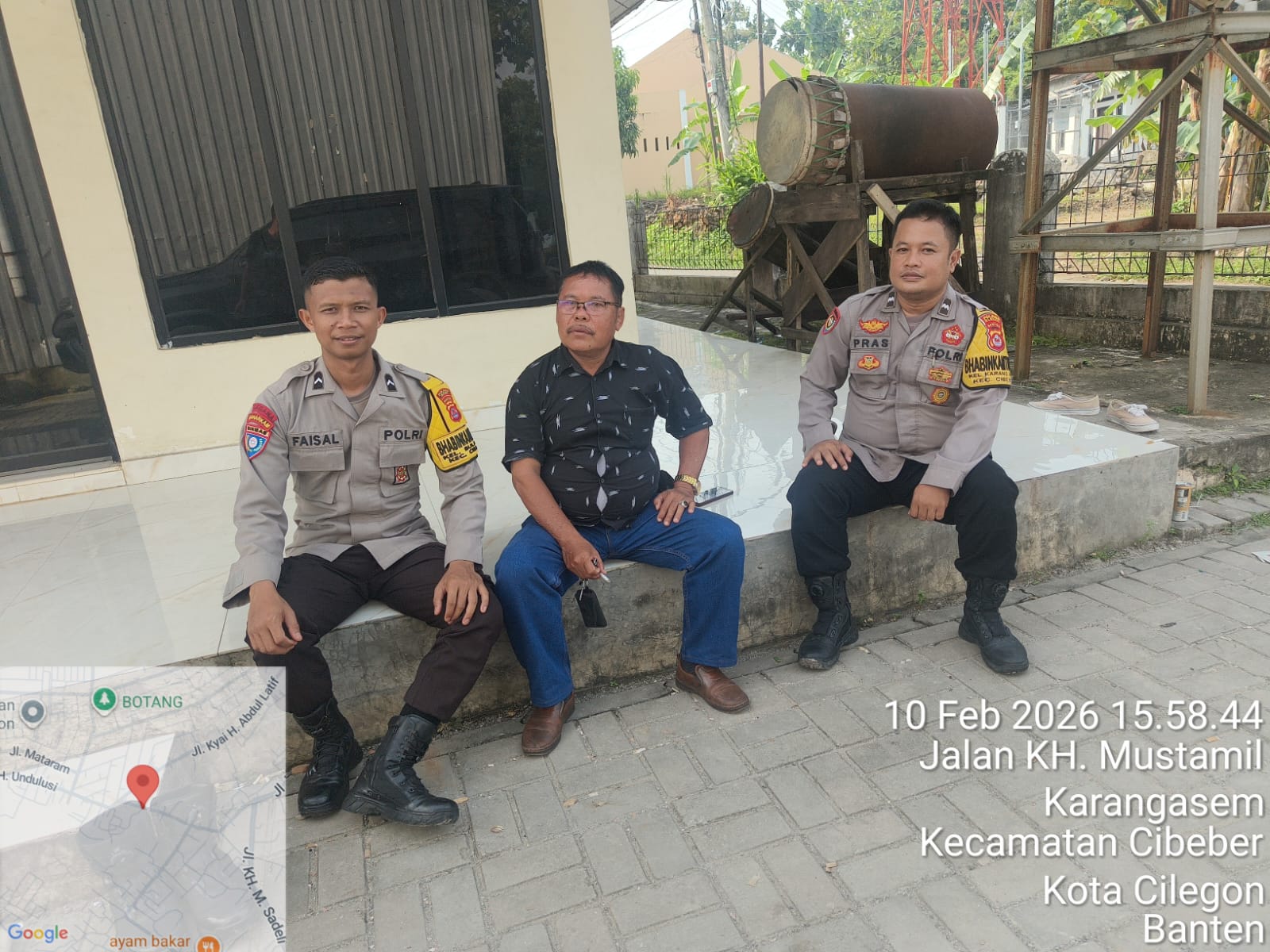 Cilegon – Polres Cilegon Polda Banten, Bhabinkamtibmas Polsek Cibeber Melaksanakan Patroli Dialogis dan Bersilaturahmi Bersama Tokoh Masyarakat di Link. Jerang Barat Kel. Karang Asem Kec. Cibeber Kota Cilegon, Selasa (10/02/2026).