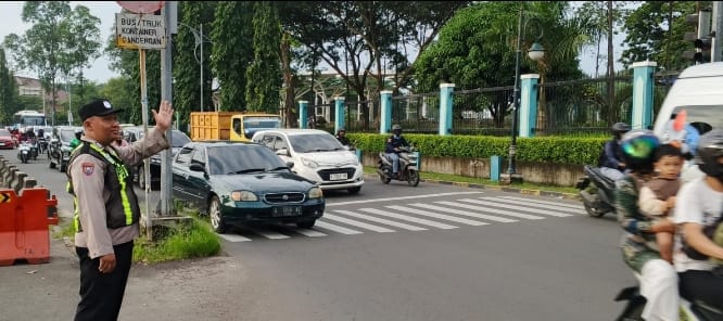 Personel Polsek Purwakarta Laksanakan Strong Point Pagi di Simpang ADB