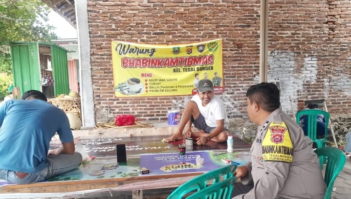 Personil Bhabinkamtibmas Aiptu Wawan Setia Budi melaksanakan kegiatan "Commander Wish Kapolda Banten" bertempat di Warung Kopi milik Bhabinkamtibmas, Lingkungan Pansepan, Kelurahan Tegal Bunder, Kecamatan Purwakarta, Kota Cilegon
