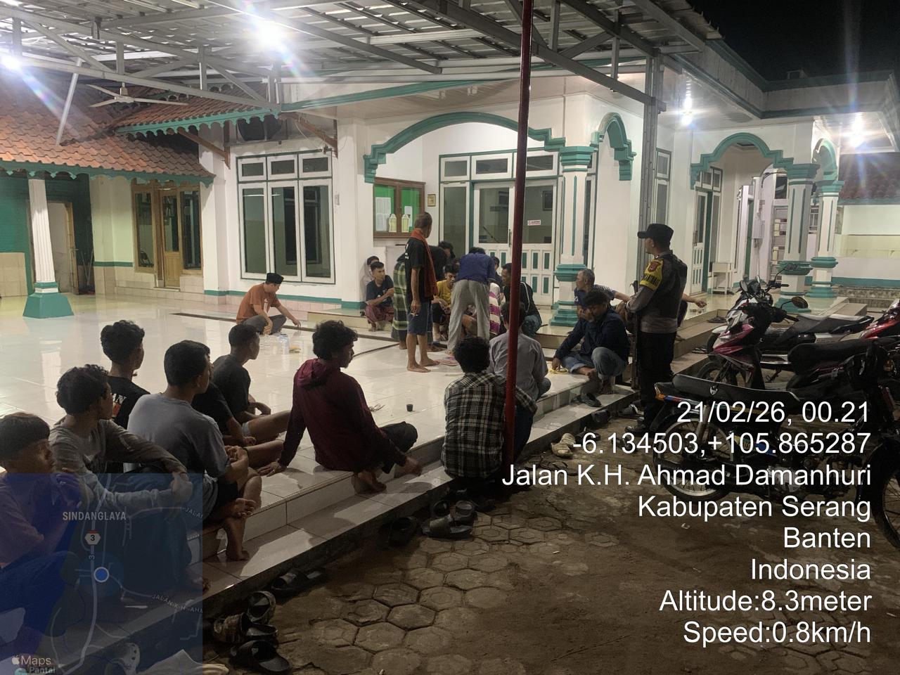 *Cilegon* – Dalam Rangka Pencegahan Kejahatan Jalanan dan Memelihara situasi keamanan dan menjaga serta memberikan rasa aman dan nyaman di masyarakat,Salah satu upaya untuk mewujudkan hal tersebut sebagaimana yang dilakukan oleh Personil Polsek Cinangka Polres Cilegon Polda Banten melaksanakan giat patroli blue light malam hari hingga menjelang pagi, Sabtu (21/02/2026).