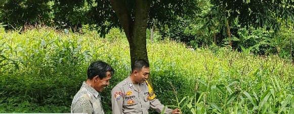 Dalam kegiatan monitoring ini, Bhabinkamtibmas meninjau langsung kondisi lahan jagung.