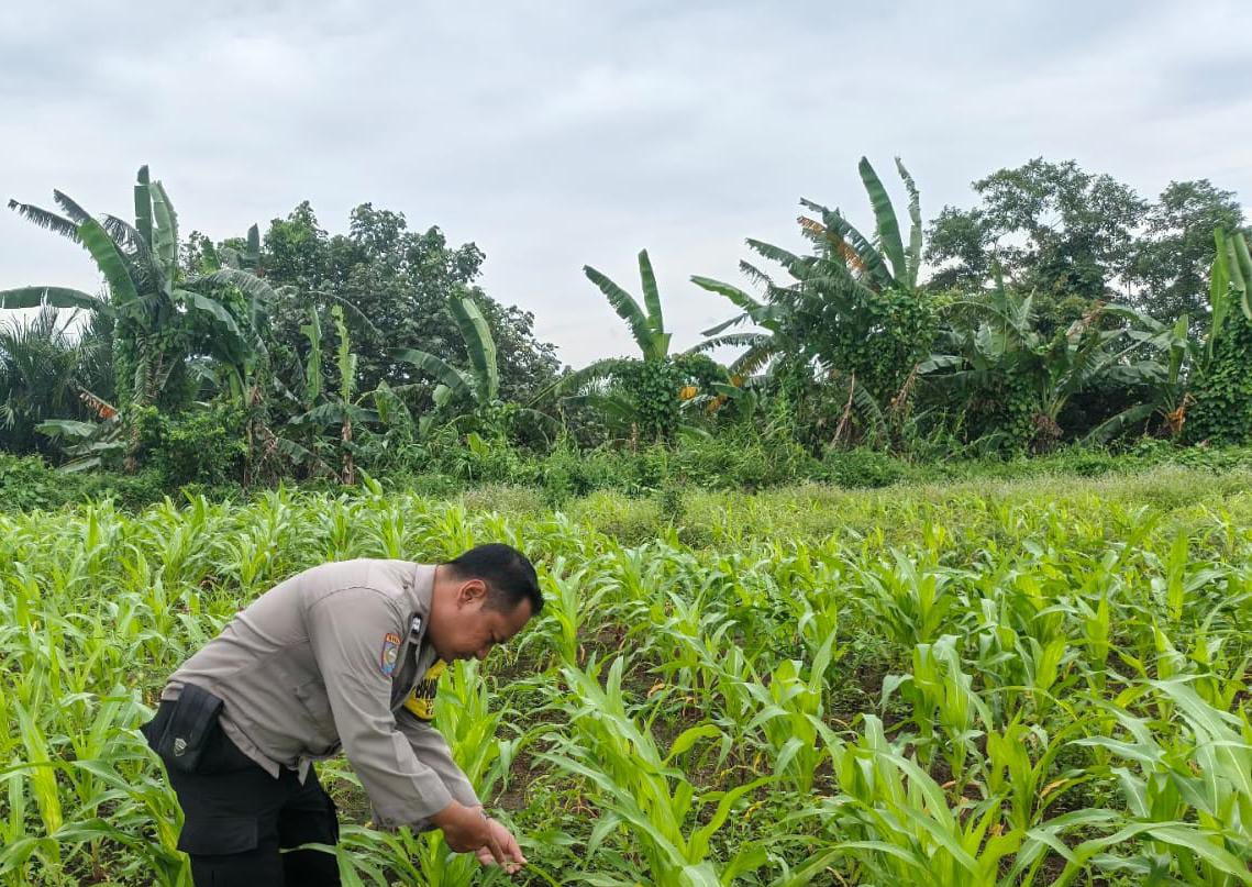 Bhabinkamtibmas Polsek Anyar Cek Pertumbuhan Tanaman Jagung