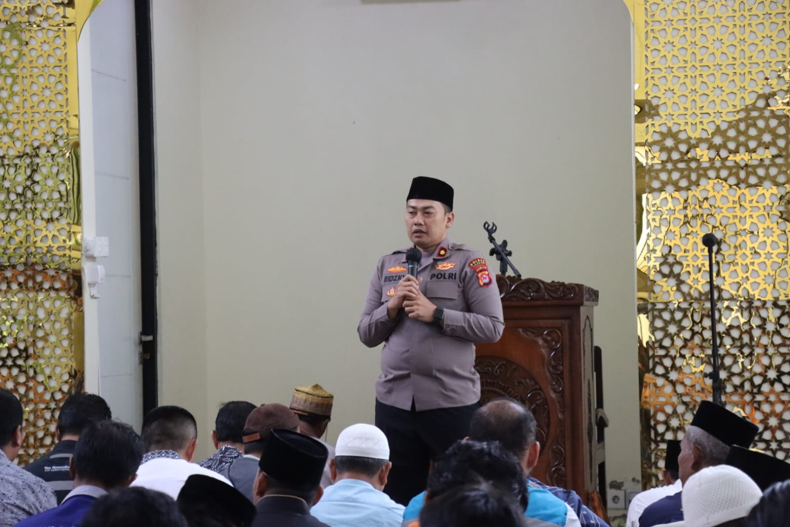 Cilegon – Upaya mempererat hubungan antara kepolisian dan masyarakat terus dilakukan Polres Cilegon melalui kegiatan Jumat Keliling (Jumling). Kali ini kegiatan tersebut dipimpin langsung oleh Wakapolres Cilegon Kompol M. Ridzky Salatun, S.I.K di Masjid Al-Amin kawasan Pelabuhan Pelindo II Banten, Jumat (6/3/2026).