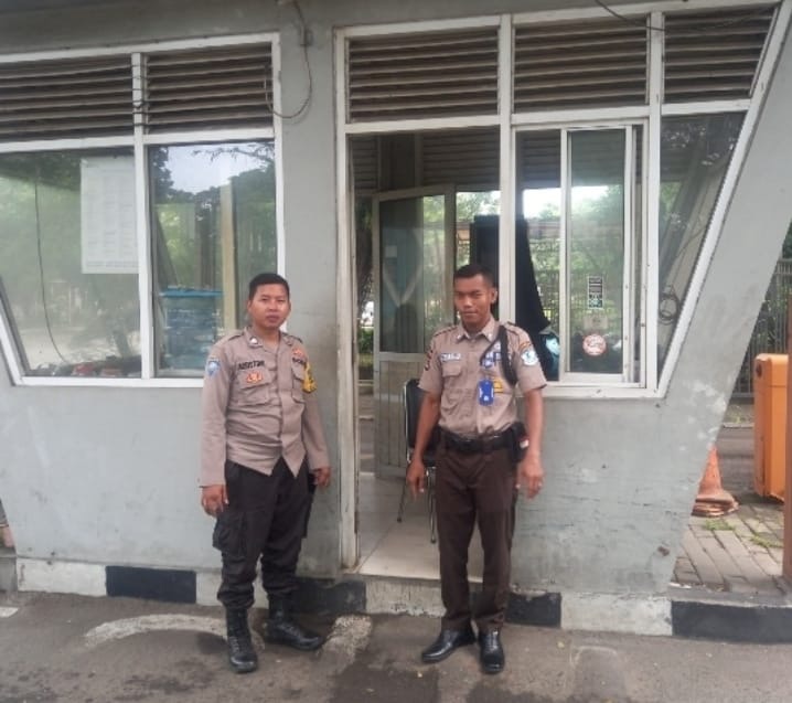 Personil Bhabinkamtibmas Bripka Agustoni melaksanakan kegiatan sambang dan silaturahmi dengan Satpam Kantor Imigrasi Kelas II TPI Cilegon yang berlokasi di Kelurahan Kotabumi, Kecamatan Purwakarta