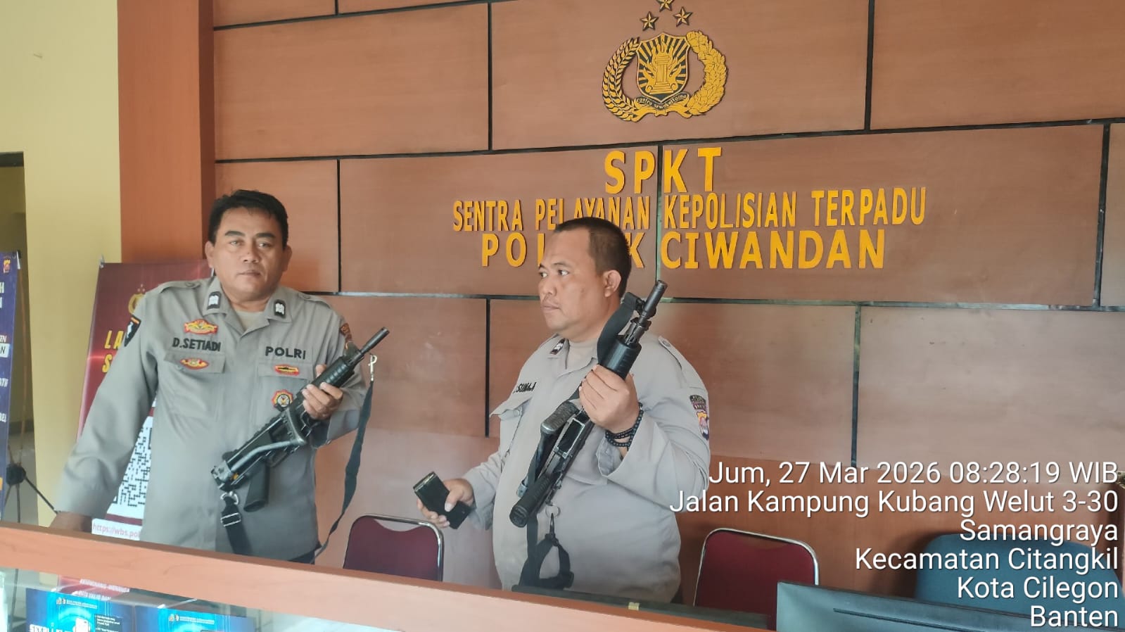 Kapolres Cilegon Polda Banten AKBP Dr. Martua Raja Taripar Laut Silitonga Melalui Kapolsek Ciwandan Polres Cilegon Polda Banten KOMPOL Achri Dwi Yunito Menekankan dan menegaskan dalam serah terima tugas jaga Mako dan pelayanan KA-SPKT wajib mengecek barang Inventaris mulai dari Senpi Dinas, Mobil Patroli, serta barang Inventaris lainya termasuk Mako apabila ada hal yang tidak sesuai wajib di cek secara seksama sehingga sewaktu serah terima tidak ada yang terabaikan dan dapat dipertanggung jawabkan, ungkapnya.
