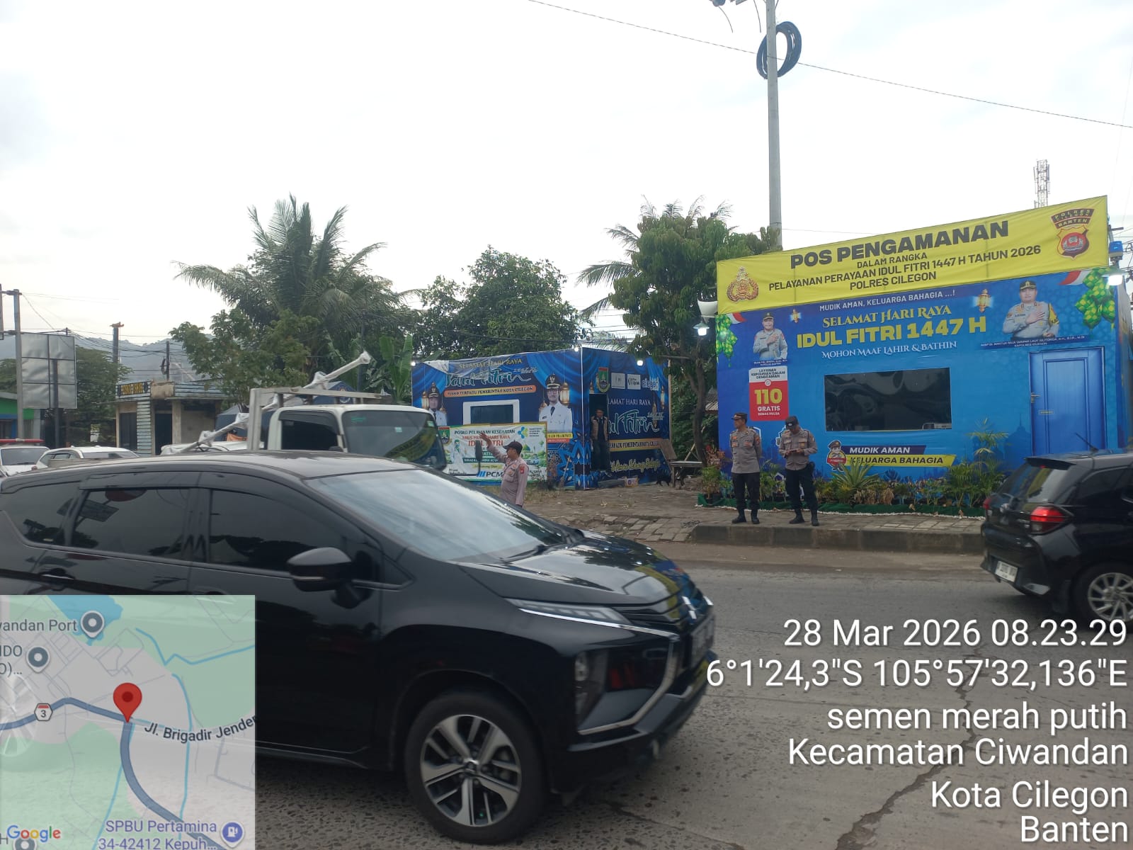 Cilegon - Polsek Ciwandan melaksanakan Kegiatan Rutin Yang Ditingkatkan (KRYD) dan monitoring jalur wisata di depan Pos Lantas JLS Ciwandan. Kegiatan ini bertujuan untuk membantu kelancaran arus lalu lintas dan memberikan pelayanan kepada masyarakat guna menciptakan keamanan dan ketertiban lalu lintas, Sabtu (28/03/2026).