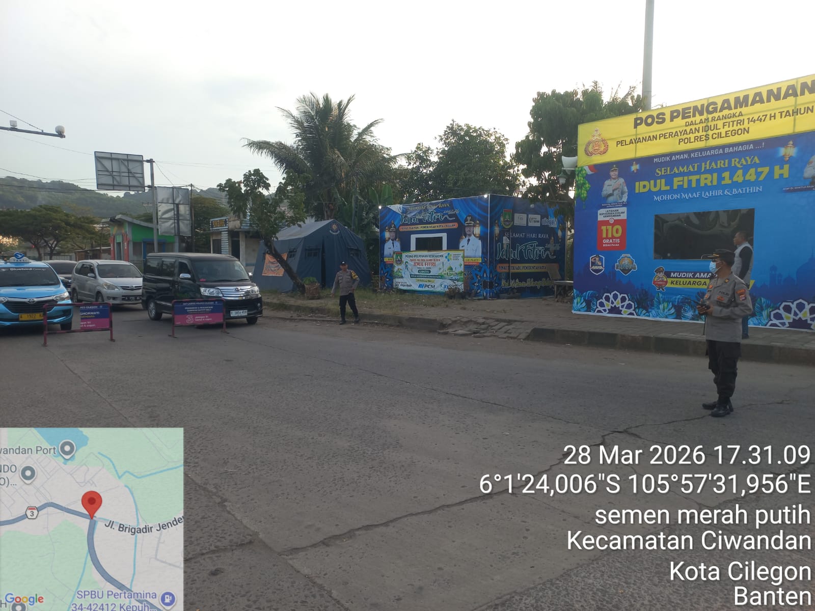 Cilegon - Polsek Ciwandan melaksanakan Kegiatan Rutin Yang Ditingkatkan (KRYD) dan monitoring jalur wisata di depan Pos Lantas JLS Ciwandan. Kegiatan ini bertujuan untuk membantu kelancaran arus lalu lintas dan memberikan pelayanan kepada masyarakat guna menciptakan keamanan dan ketertiban lalu lintas, Sabtu (28/03/2026).