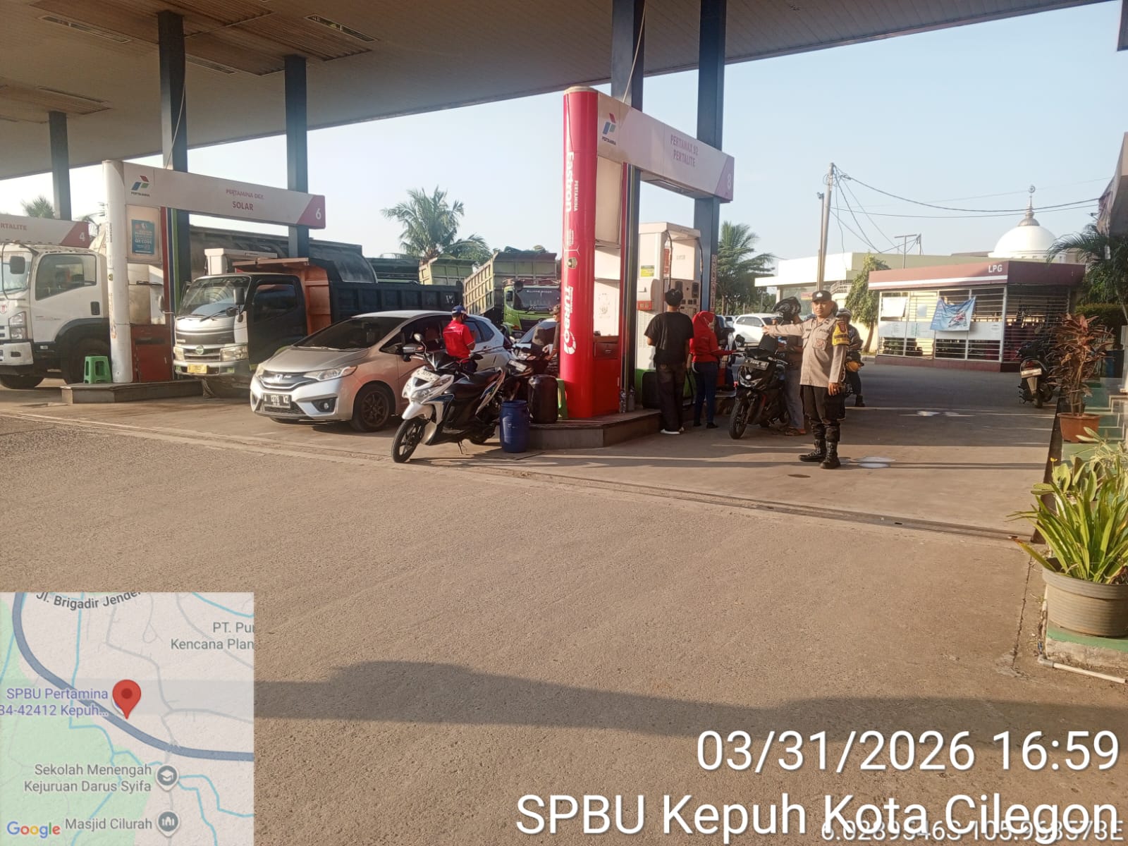 Cilegon - Kepolisian Polsek Ciwandan Polres Cilegon Polda Banten, melakukan pengecekan stok Bahan Bakar Minyak (BBM) di dua SPBU di wilayah Ciwandan, Cilegon, Selasa (31/03/2026).
