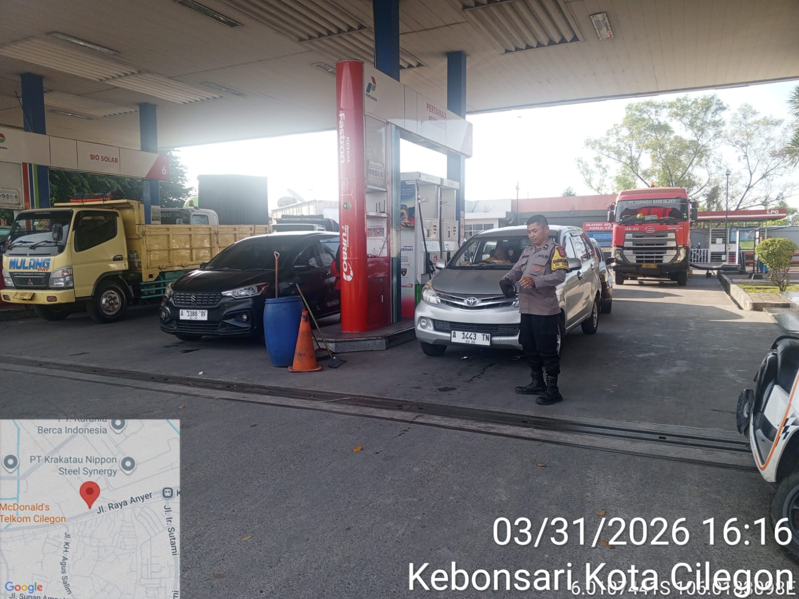 Cilegon - Kepolisian Polsek Ciwandan Polres Cilegon Polda Banten, melakukan pengecekan stok Bahan Bakar Minyak (BBM) di dua SPBU di wilayah Ciwandan, Cilegon, Selasa (31/03/2026).