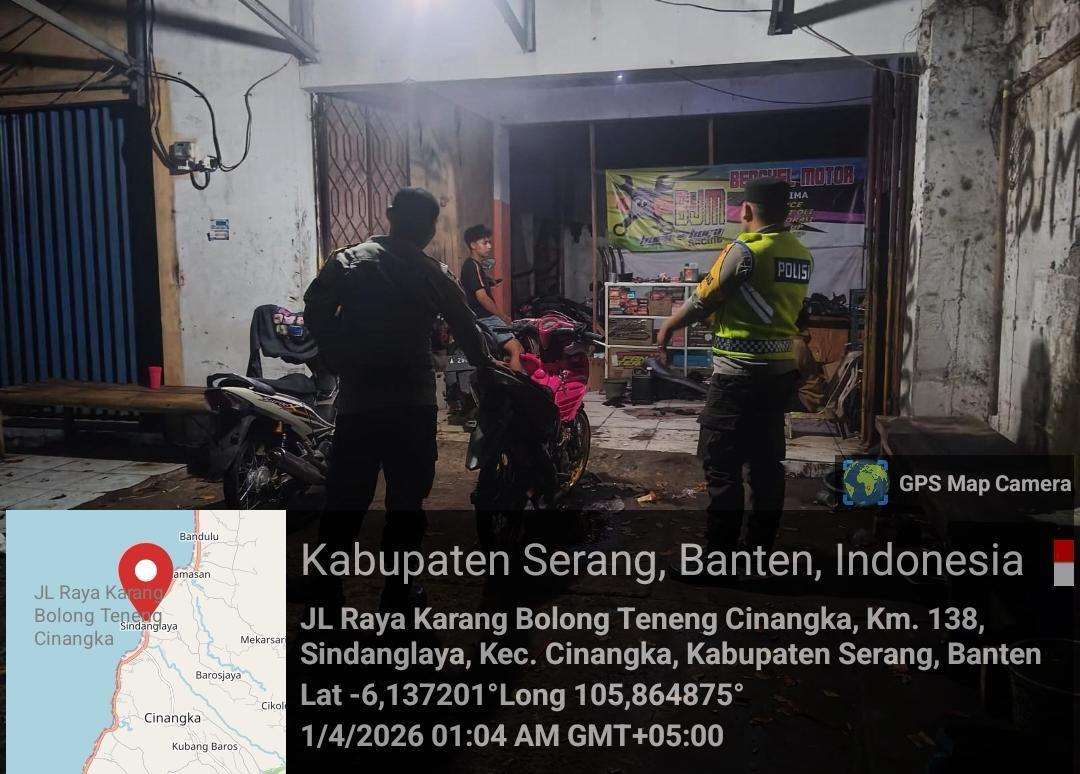 *Cilegon* – Dalam Rangka Pencegahan Kejahatan Jalanan dan Memelihara situasi keamanan dan menjaga serta memberikan rasa aman dan nyaman di masyarakat,Salah satu upaya untuk mewujudkan hal tersebut sebagaimana yang dilakukan oleh Personil Polsek Cinangka Polres Cilegon Polda Banten melaksanakan giat patroli blue light malam hari hingga menjelang pagi, Rabu (01/04/2026).