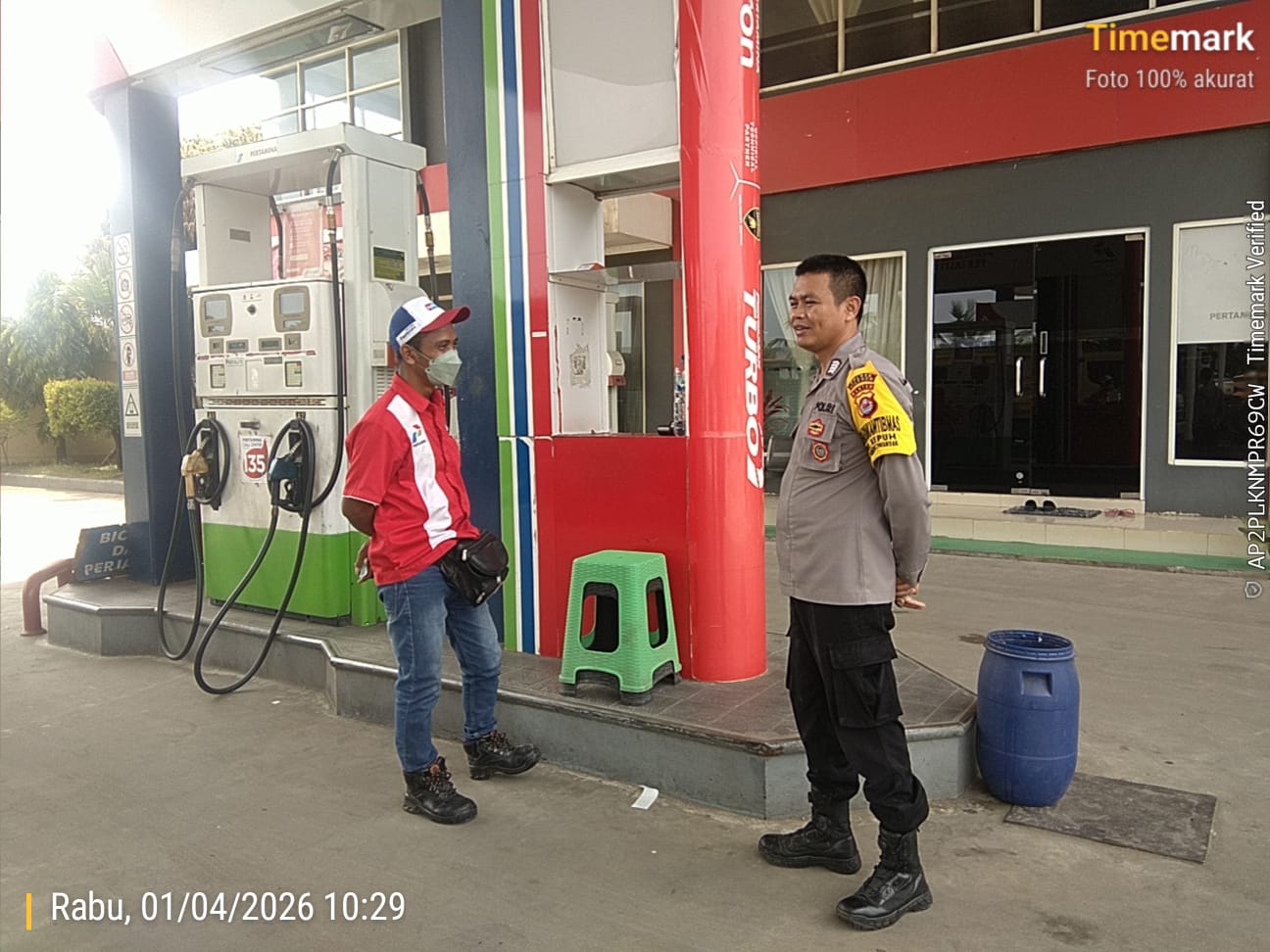 Cilegon - Kepolisian Polsek Ciwandan Polres Cilegon Polda Banten, melakukan pengecekan stok Bahan Bakar Minyak (BBM) di dua SPBU di wilayah Ciwandan, Cilegon, Rabu (01/04/2026).
