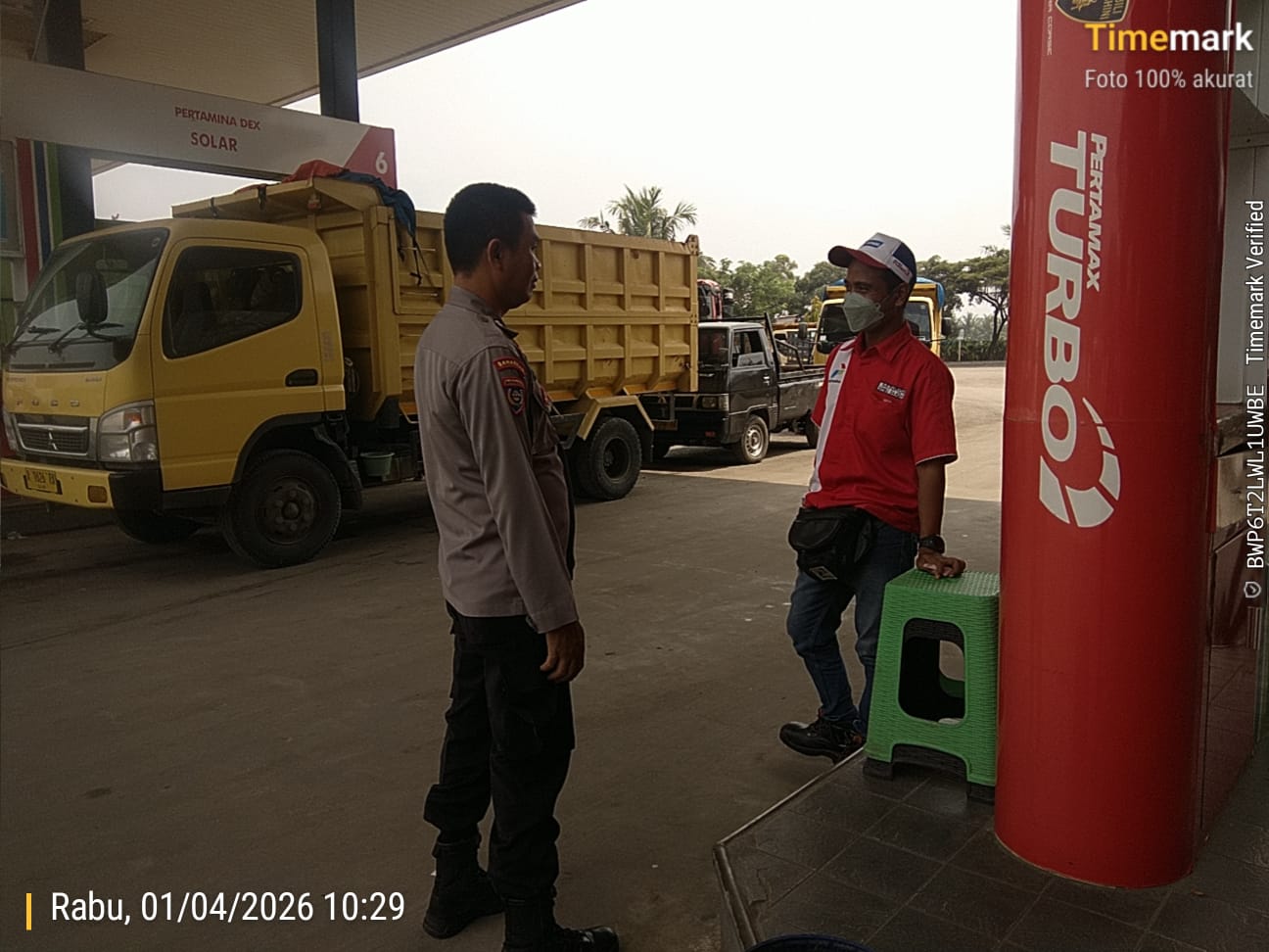 Cilegon - Kepolisian Polsek Ciwandan Polres Cilegon Polda Banten, melakukan pengecekan stok Bahan Bakar Minyak (BBM) di dua SPBU di wilayah Ciwandan, Cilegon, Rabu (01/04/2026).