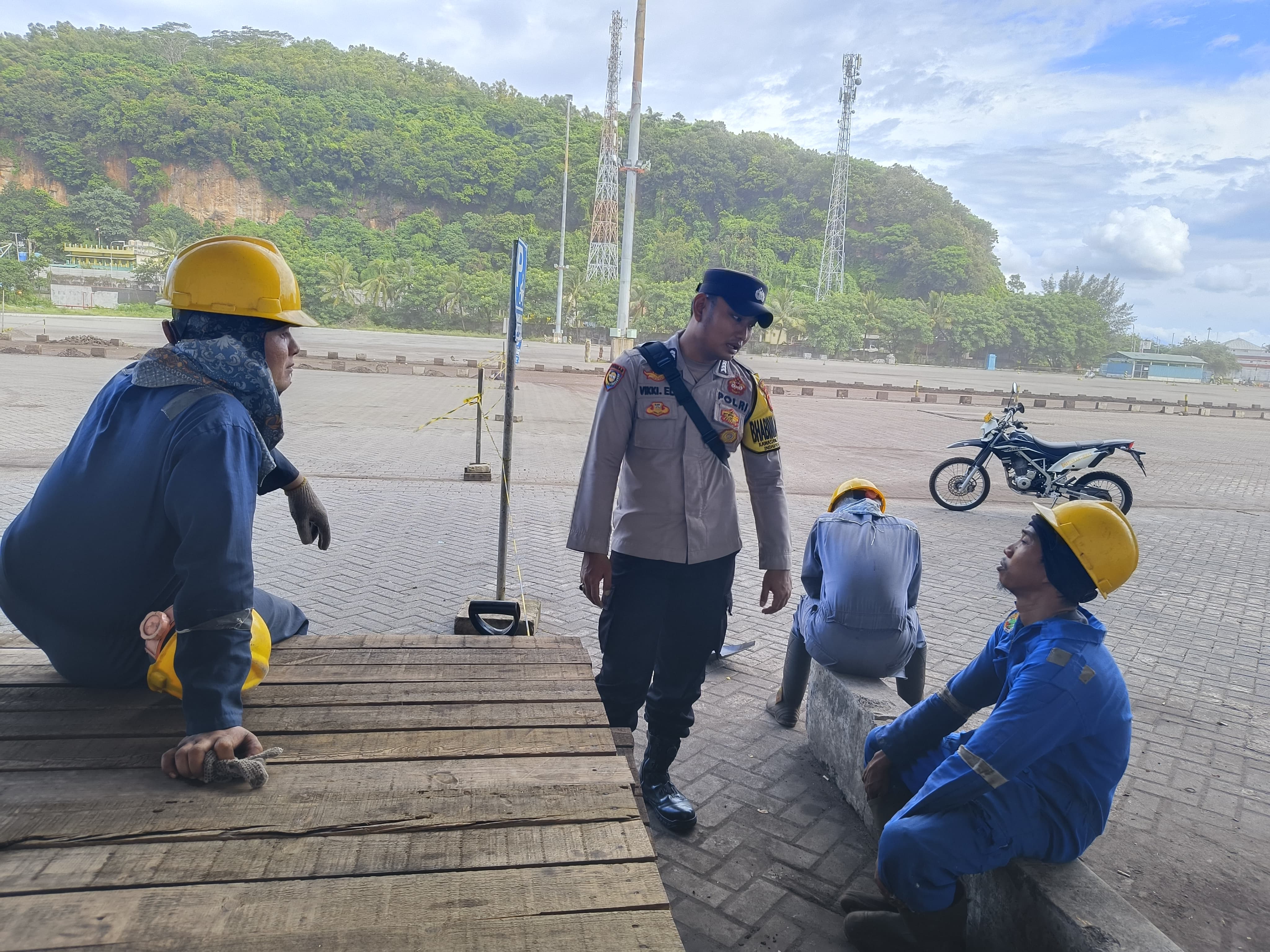 Personil Bhabinkamtibmas Polsek KP Banten Berbincang dengan Karyawan Pelabuhan