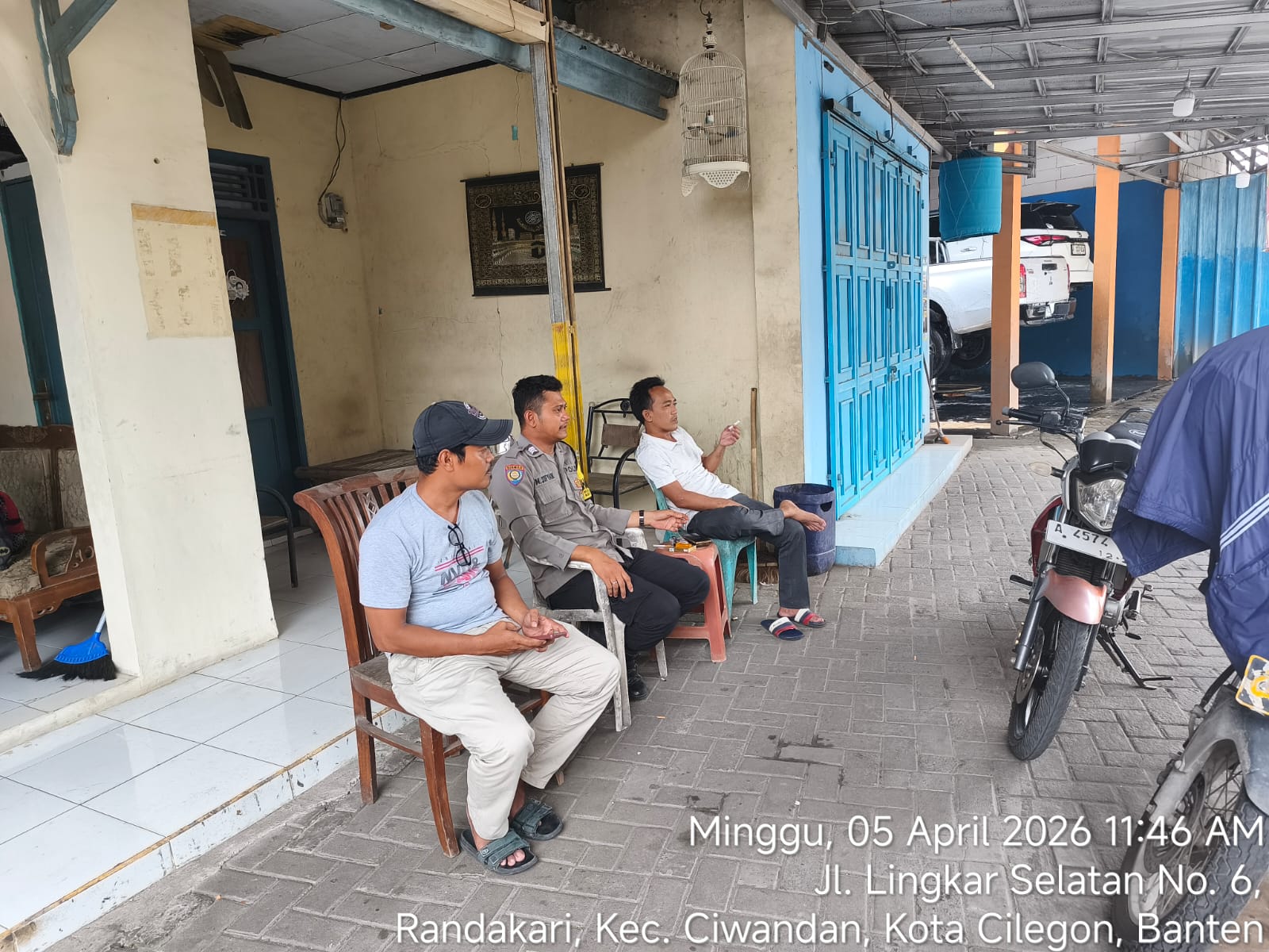 Cilegon - Giat sambang ini merupakan salah satu tugas rutin Bhabinkamtibmas yakni dengan melaksanakan kunjungan kepada masyarakat binaannya untuk menjalin silaturahmi yang lebih erat dan menyampaikan pesan-pesan kamtibmas serta mencari informasi yang berkembang di masyarakat agar tercipta situasi kamtibmas yang aman dan kondusif, Minggu (05/04/2026).