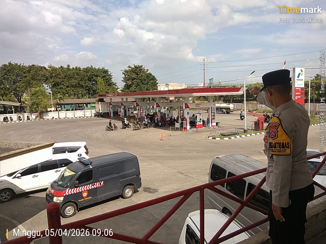 Cilegon - Kepolisian Polsek Ciwandan Polres Cilegon Polda Banten, melakukan pengecekan stok Bahan Bakar Minyak (BBM) di dua SPBU di wilayah Ciwandan, Cilegon, Minggu (05/04/2026).