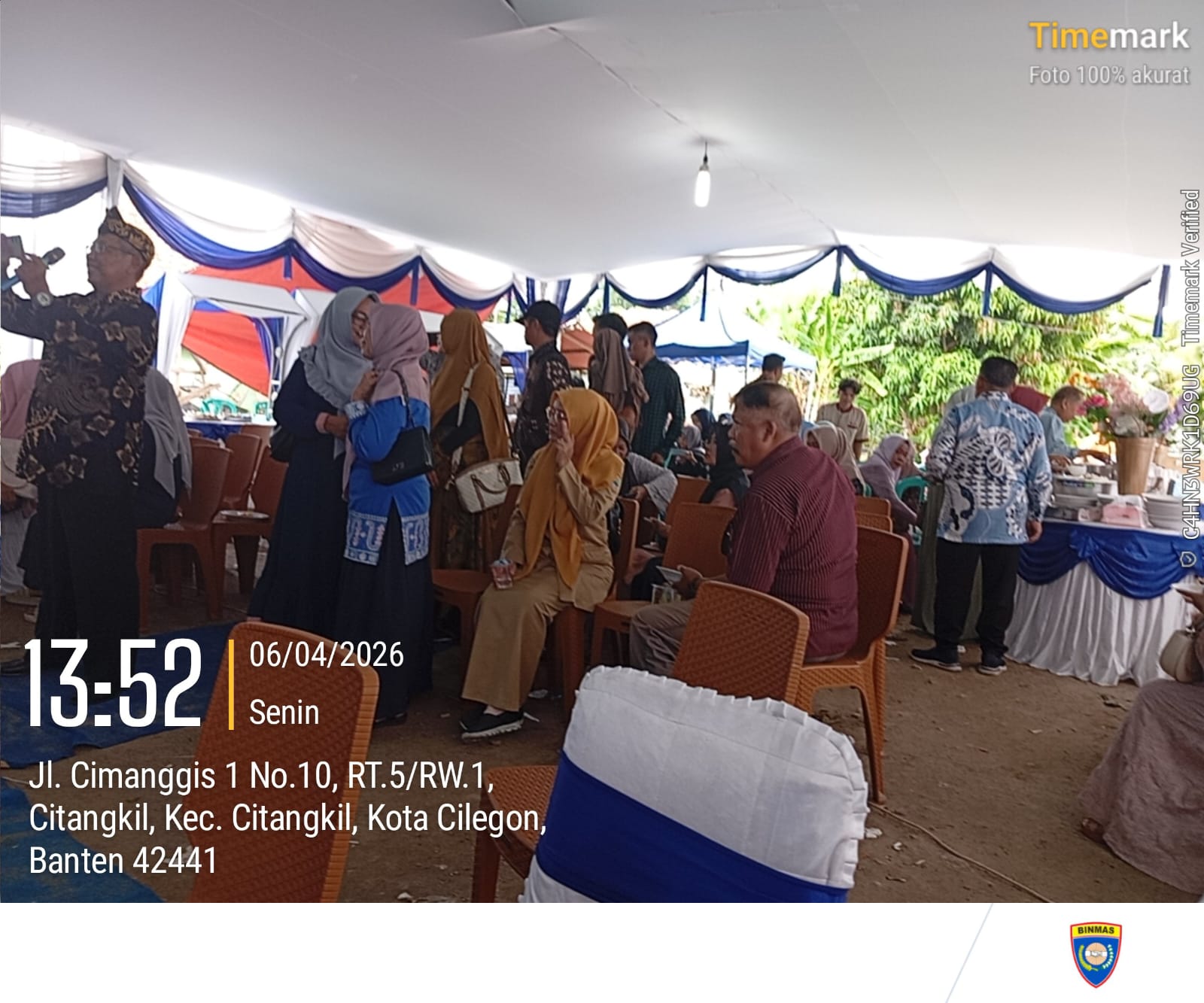 Cilegon - Bhabinkamtibmas Polsek Ciwandan Polres Cilegon Polda Banten melaksanakan Kegiatan Kondangan/Undangan ini bertujuan untuk memastikan acara berlangsung dengan aman dan tertib, serta memberikan rasa aman kepada warga yang menghadiri resepsi pernikahan tersebut, Senin (06/04/2026).