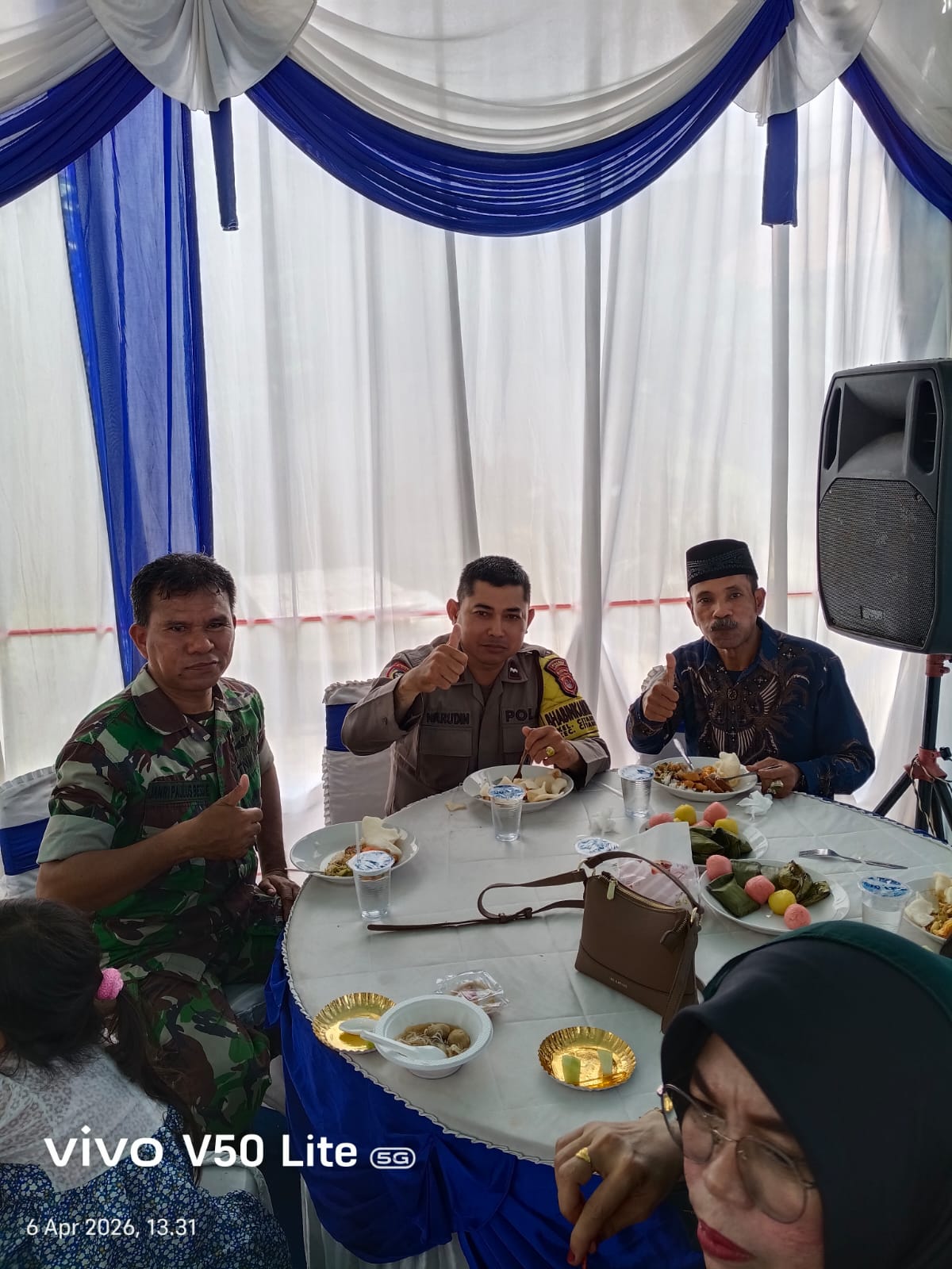 Cilegon - Bhabinkamtibmas Polsek Ciwandan Polres Cilegon Polda Banten melaksanakan Kegiatan Kondangan/Undangan ini bertujuan untuk memastikan acara berlangsung dengan aman dan tertib, serta memberikan rasa aman kepada warga yang menghadiri resepsi pernikahan tersebut, Senin (06/04/2026).